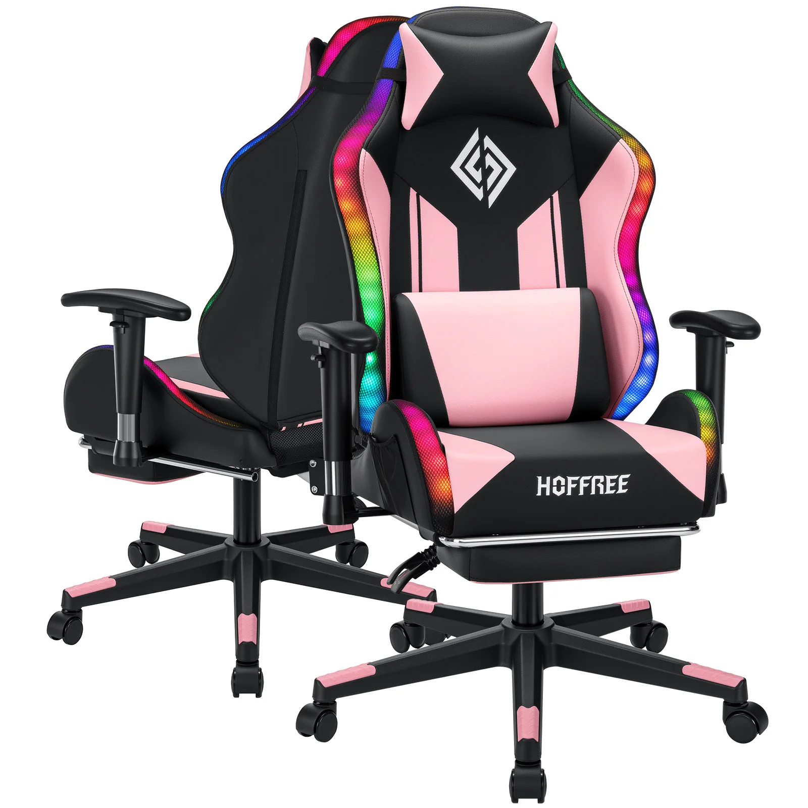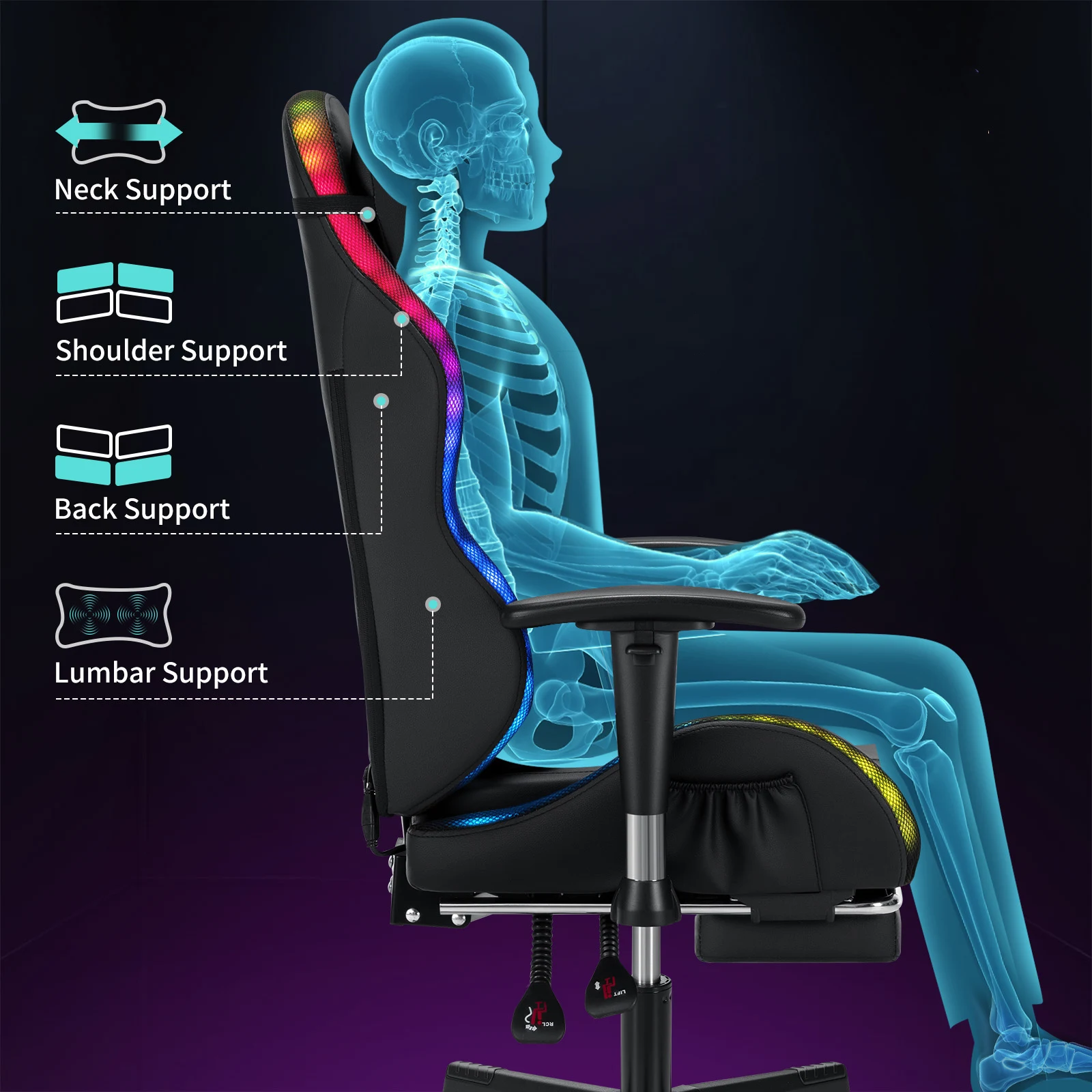 Kids’ LED Gaming Chair with Footrest and Lumbar