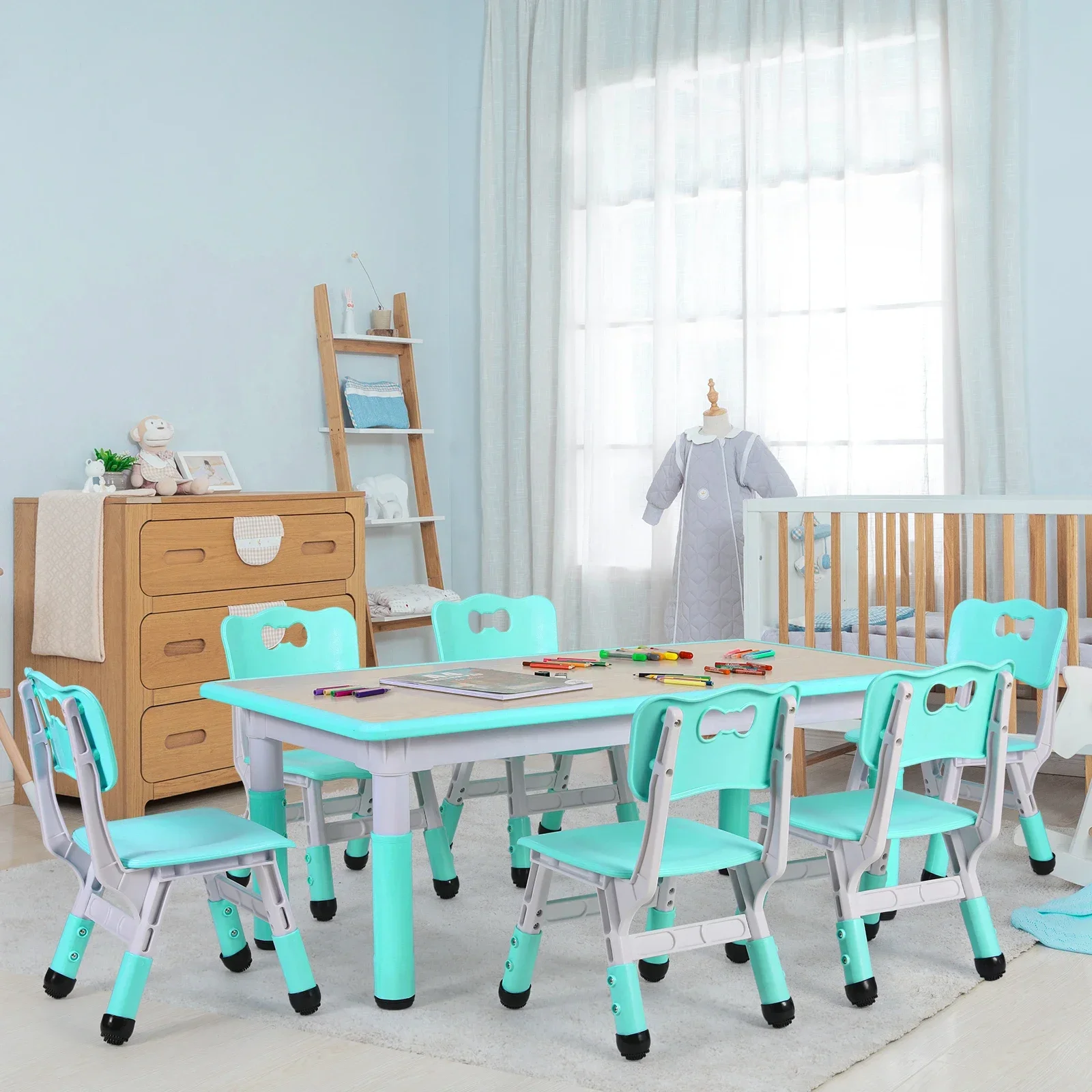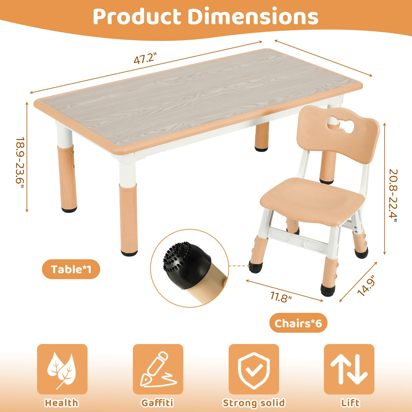Kids Rectangle Table 6 Chairs Height Adjustable