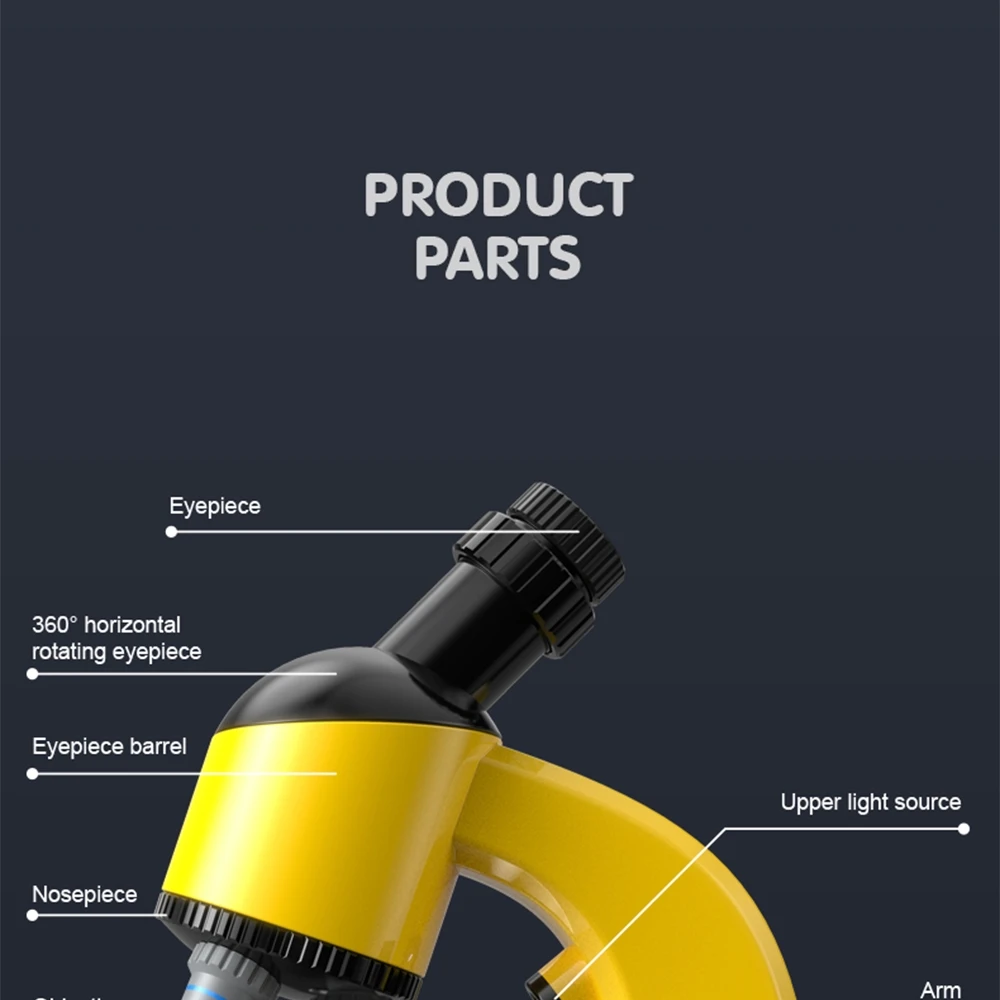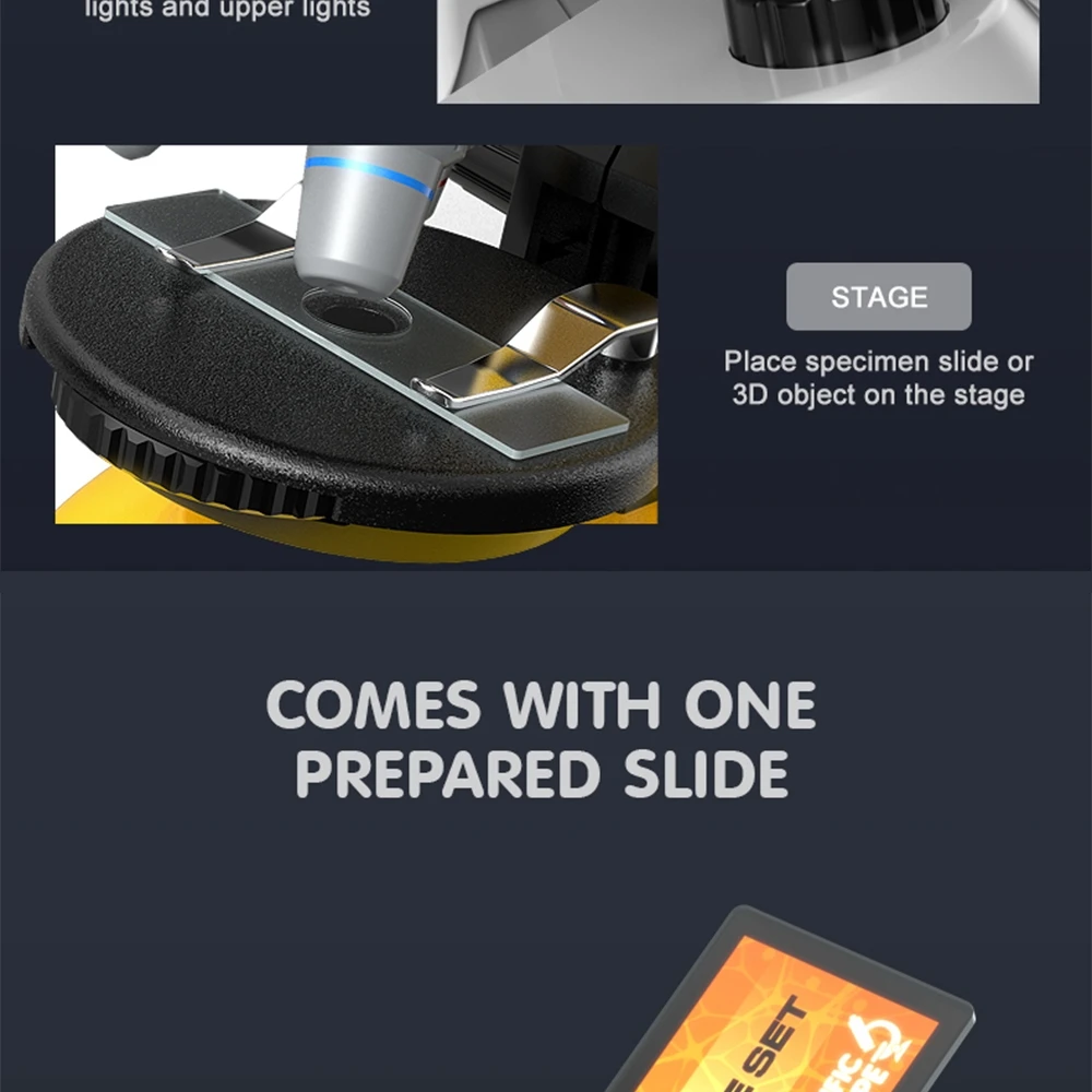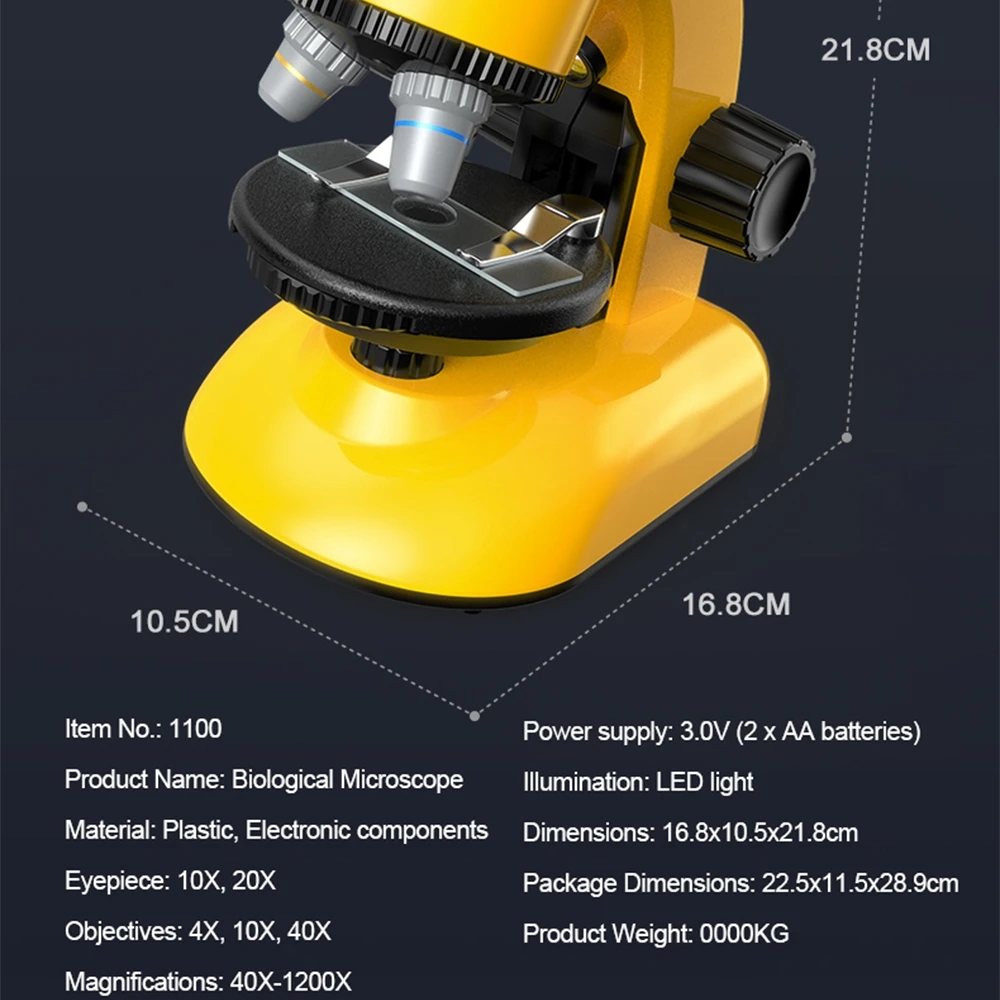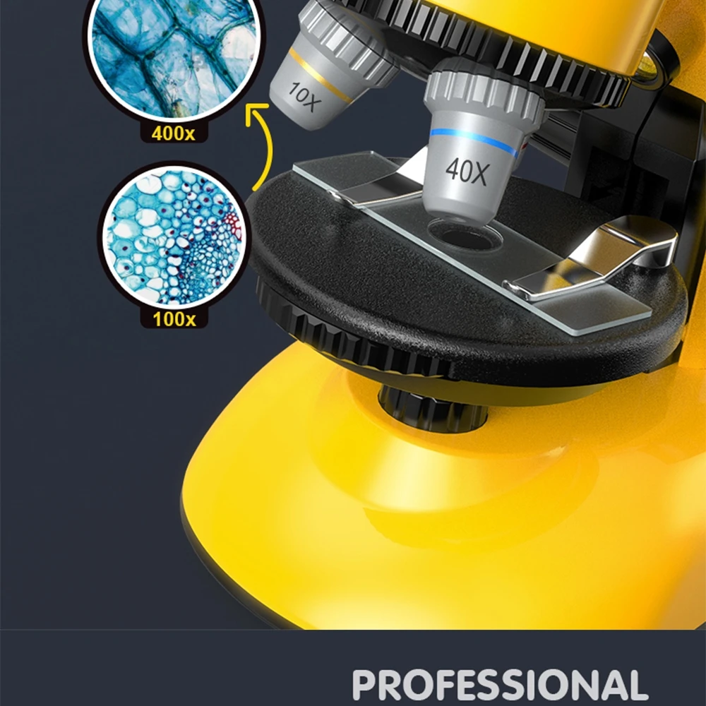 - High Magnification – Kids’ beginner microscope provides high magnification suitable for educational use, including 100x, 400x, and 1200x options.