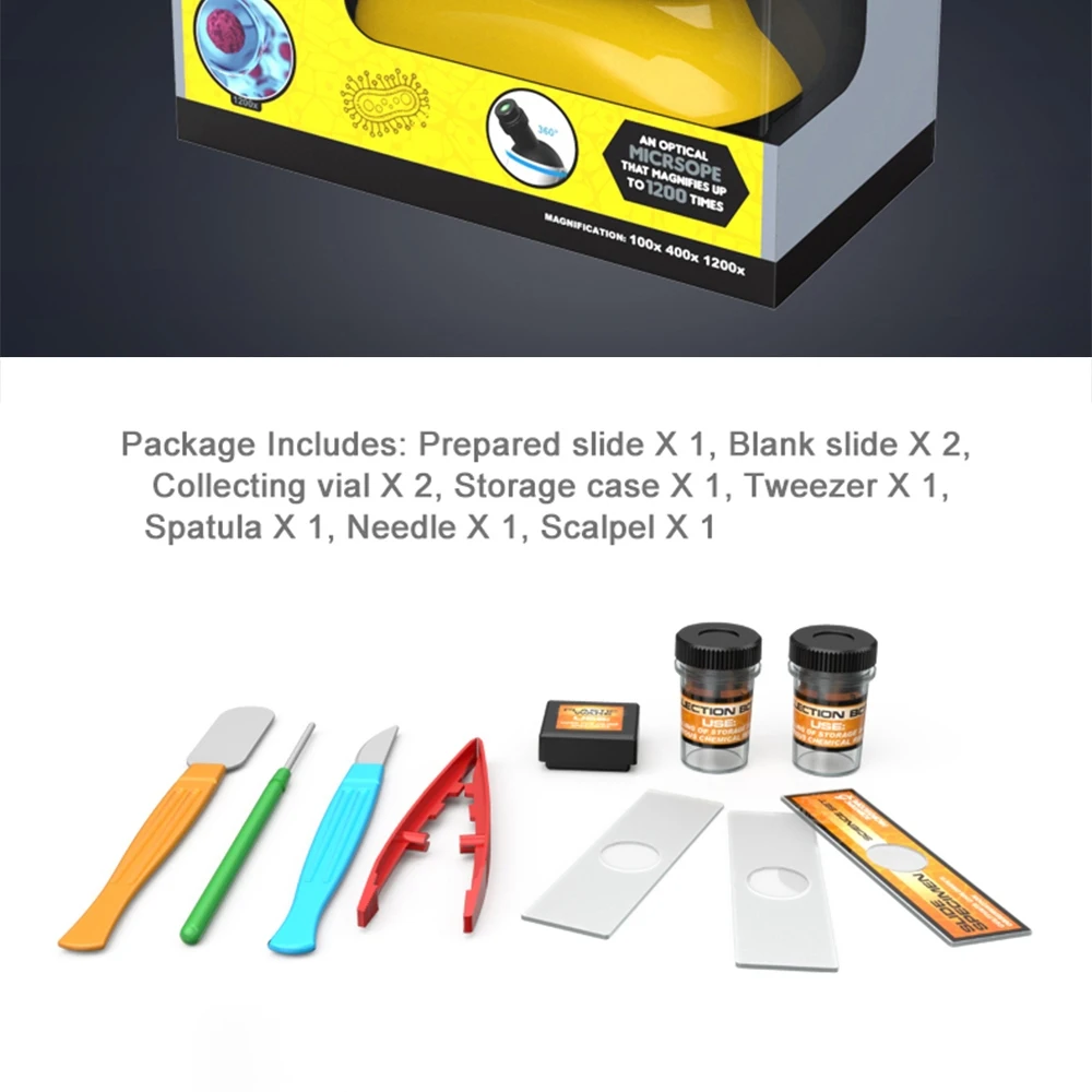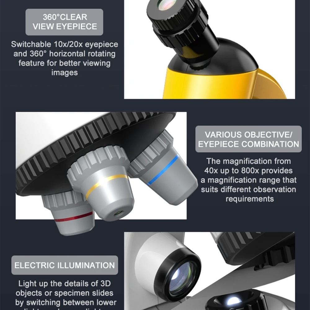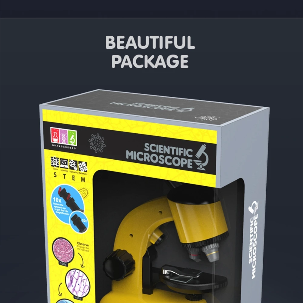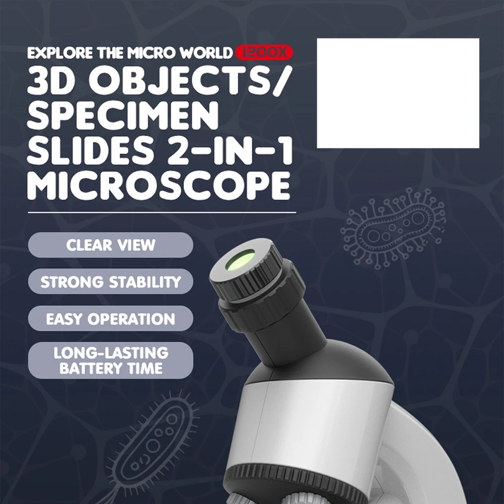 - High Magnification – Kids’ beginner microscope provides high magnification suitable for educational use, including 100x, 400x, and 1200x options.