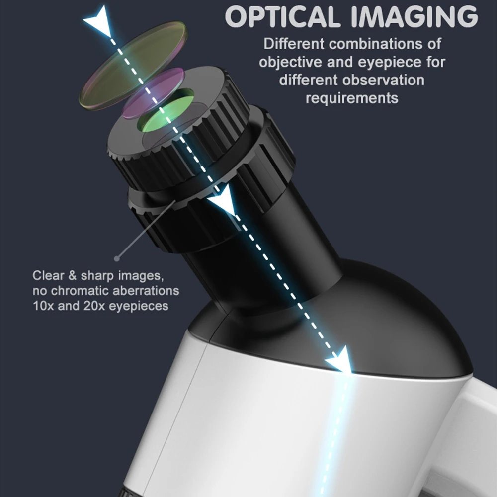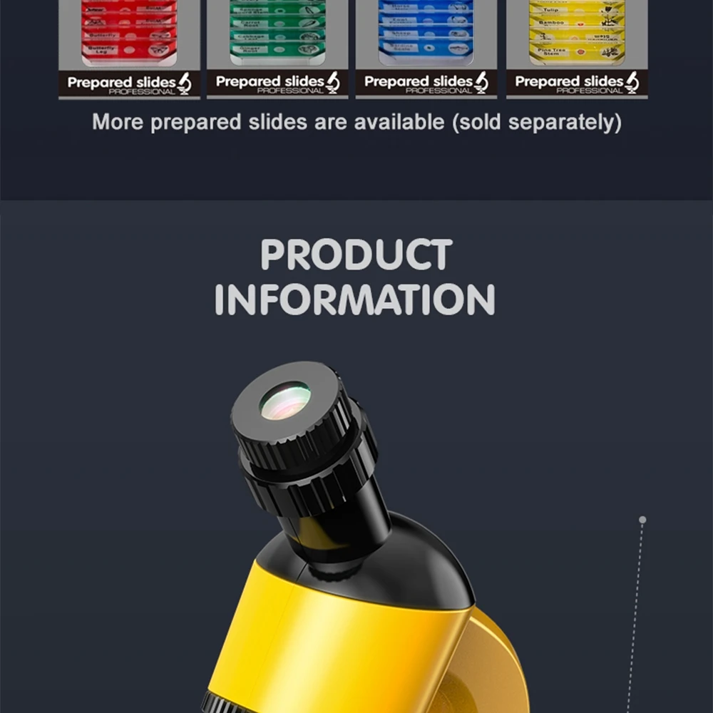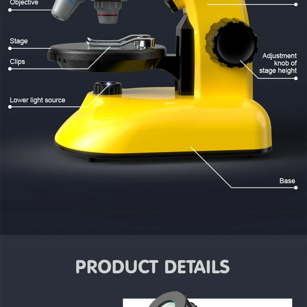 - High Magnification – Kids’ beginner microscope provides high magnification suitable for educational use, including 100x, 400x, and 1200x options.