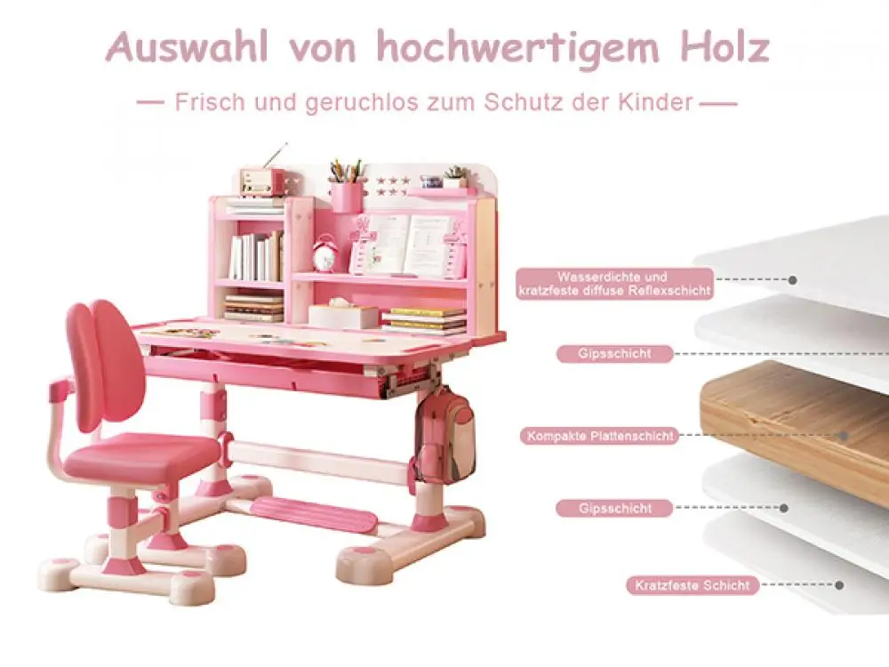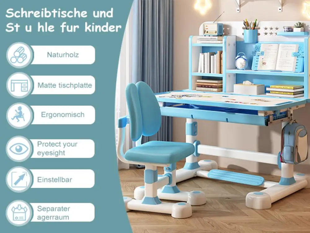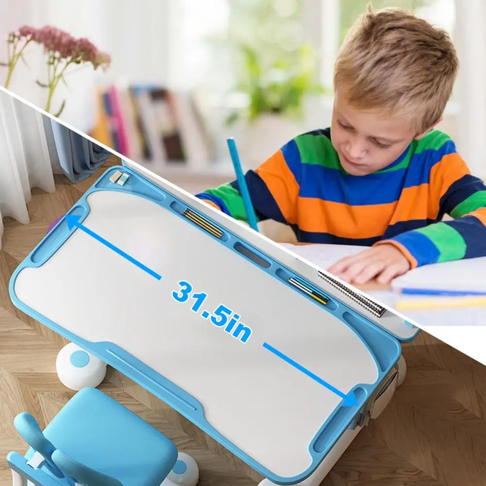 - Posture-friendly widened desktop: Sitting corrector design helps your child maintain an upright posture and protect their vision. The upgraded 80 cm wide writing area offers more space than many standard study sets, making reading, writing, and device use more comfortable.
