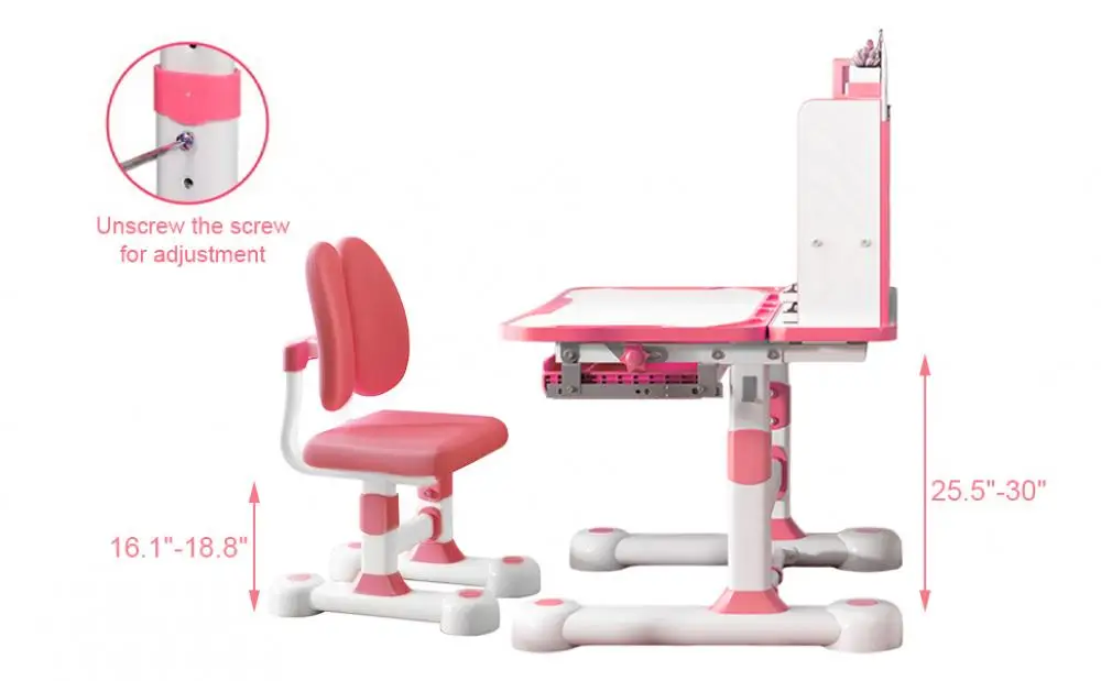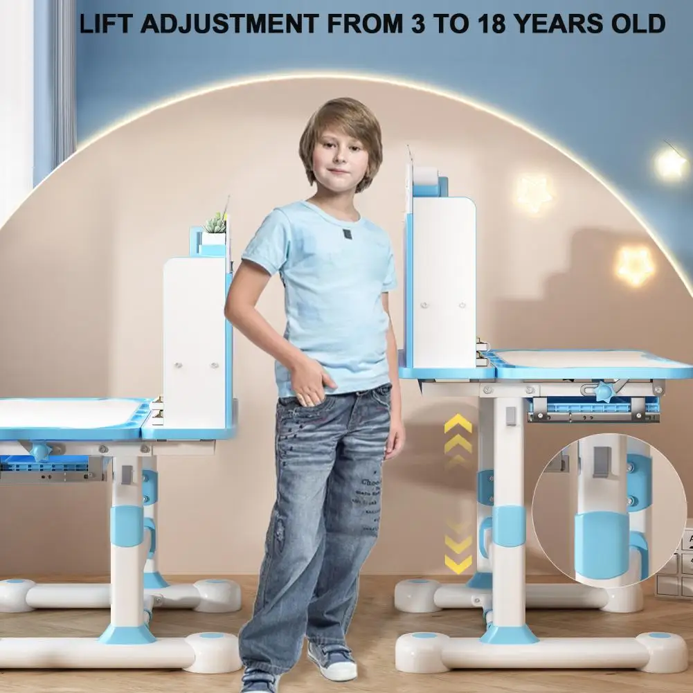 - Height adjustable with ergonomic dual back support: The desk and chair heights can be adjusted as your child grows, suitable for roughly ages 3 to 18. The dual back support chair design wraps the back and waist, follows kids’ body curves, and encourages healthy sitting habits.