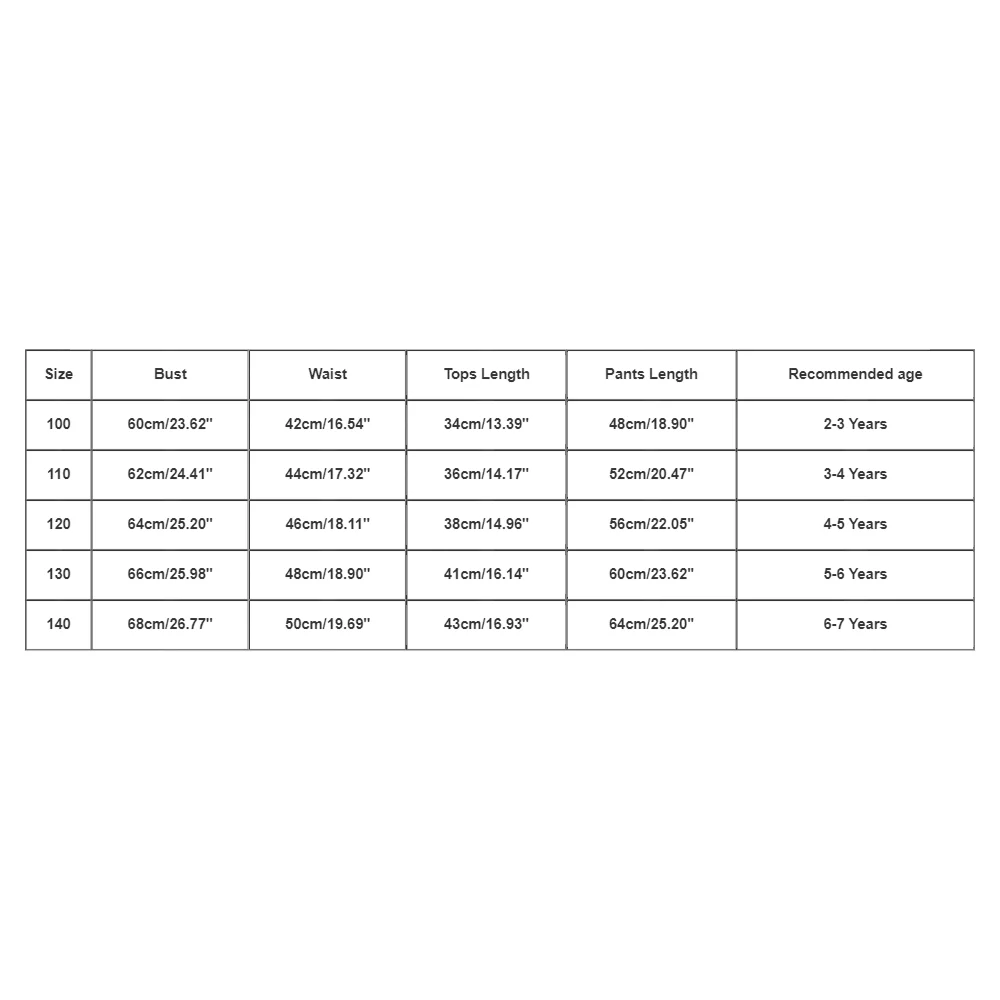 - 4-5 Years: Top Length 38 cm / 14.96″, Pants Length 56 cm / 22.05″