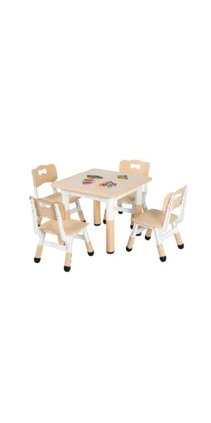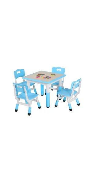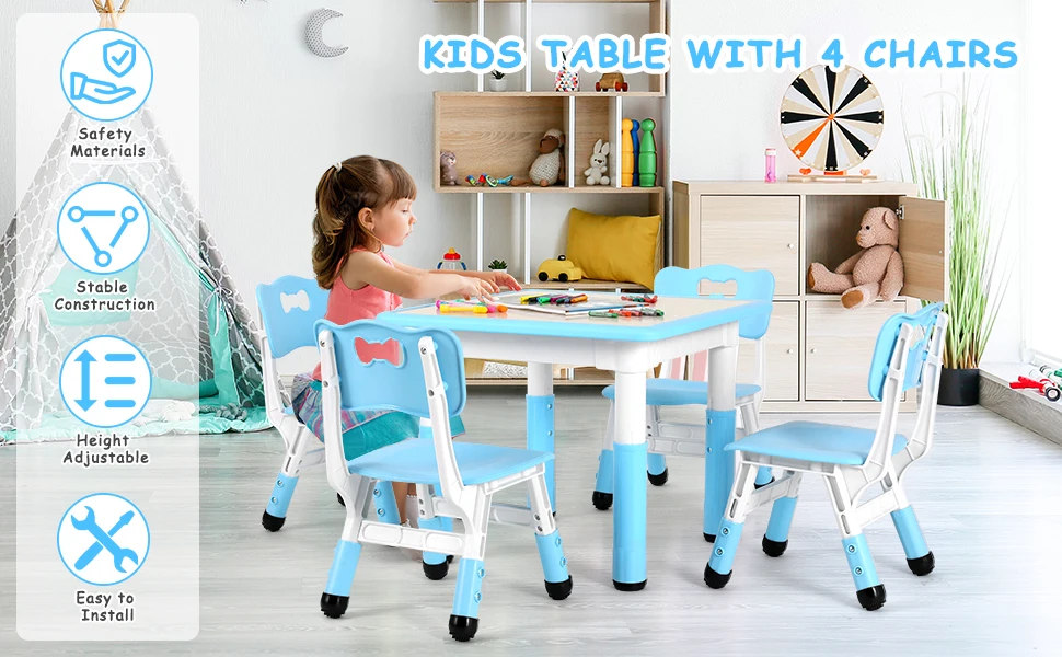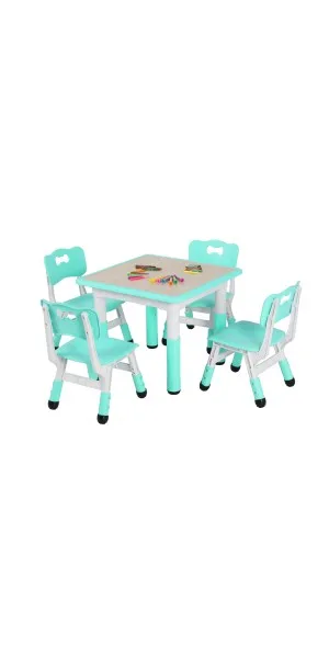 Kids Table 4 Chairs Set Height Adjustable Ages 2-10