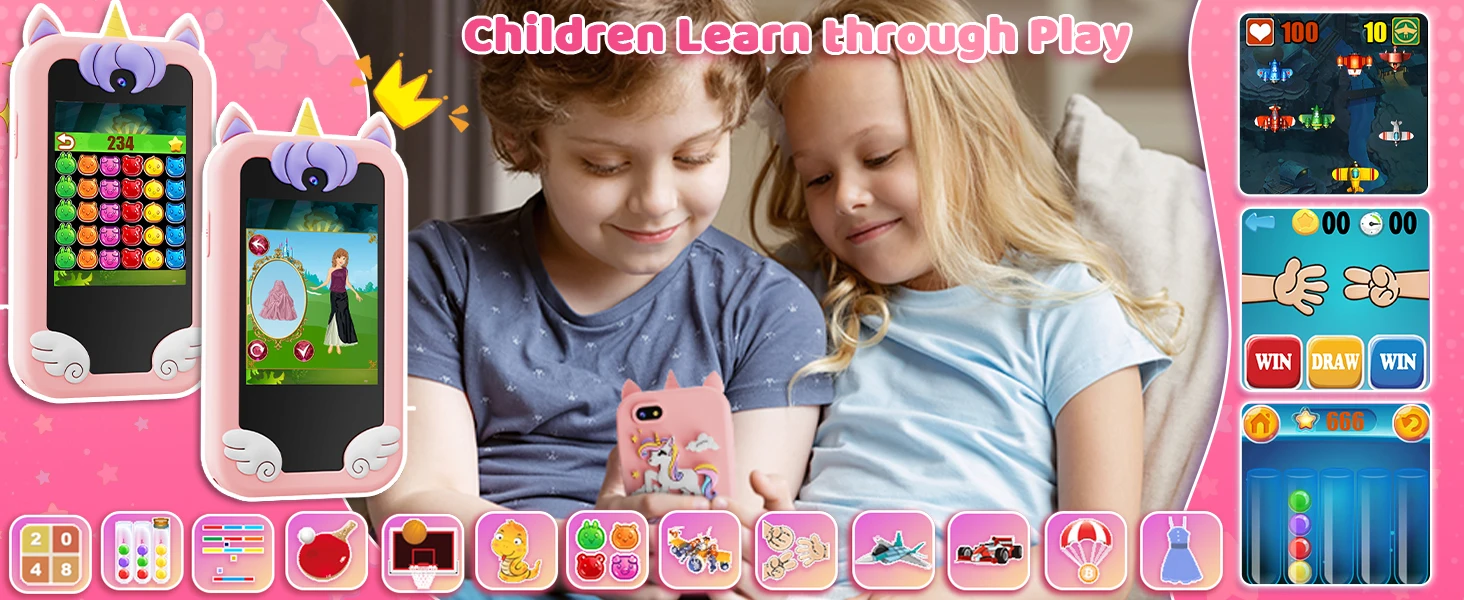12 Educational Puzzle Games: Kids can enjoy music anywhere and anytime. Comes with a USB Type-C cable and an 8GB SD card. It includes 13 game modes to stimulate logical thinking, reaction speed, and hand-eye coordination. Note: When first turning on the phone, remove the case, slide the power button located under the volume button downward, and then turn on.