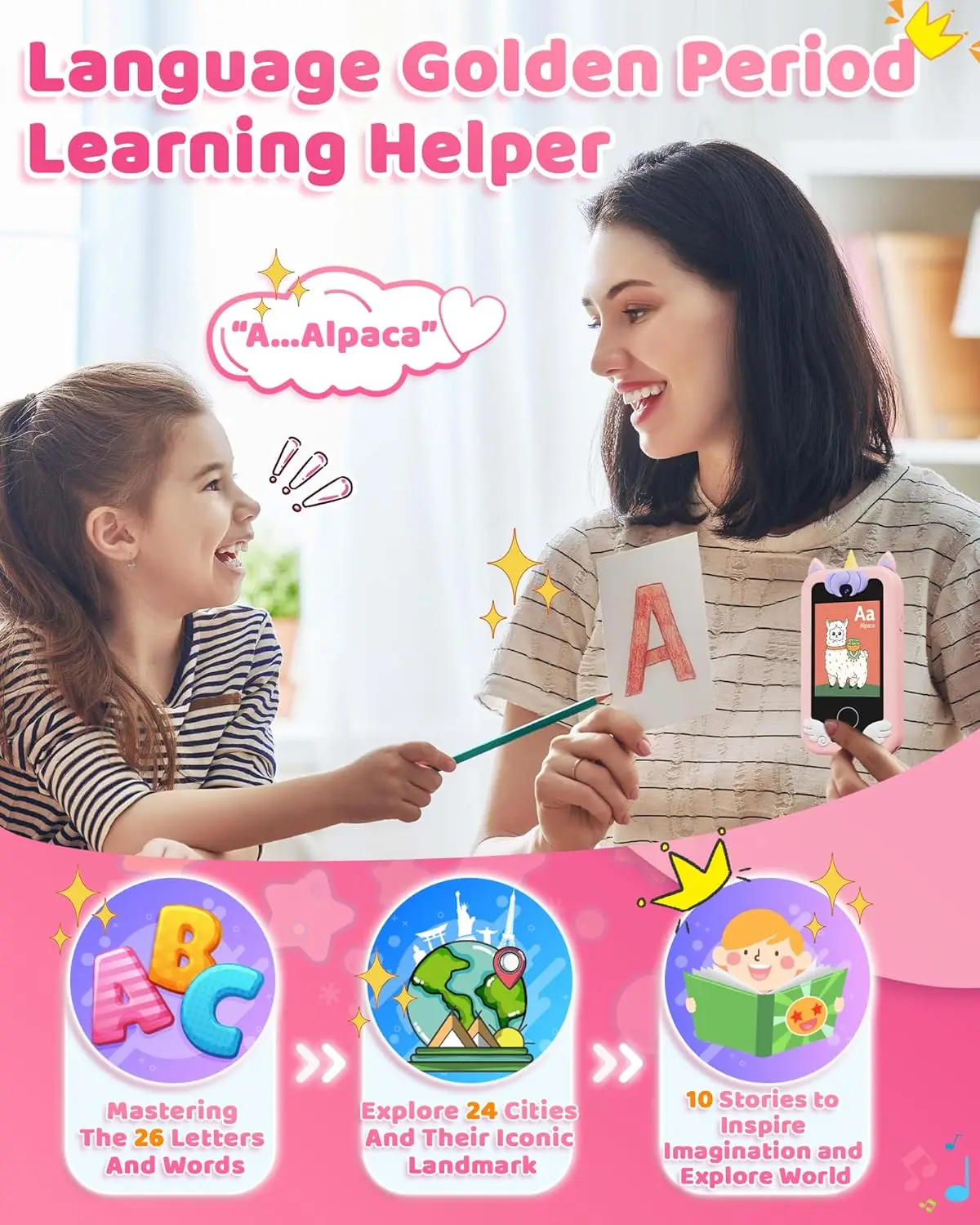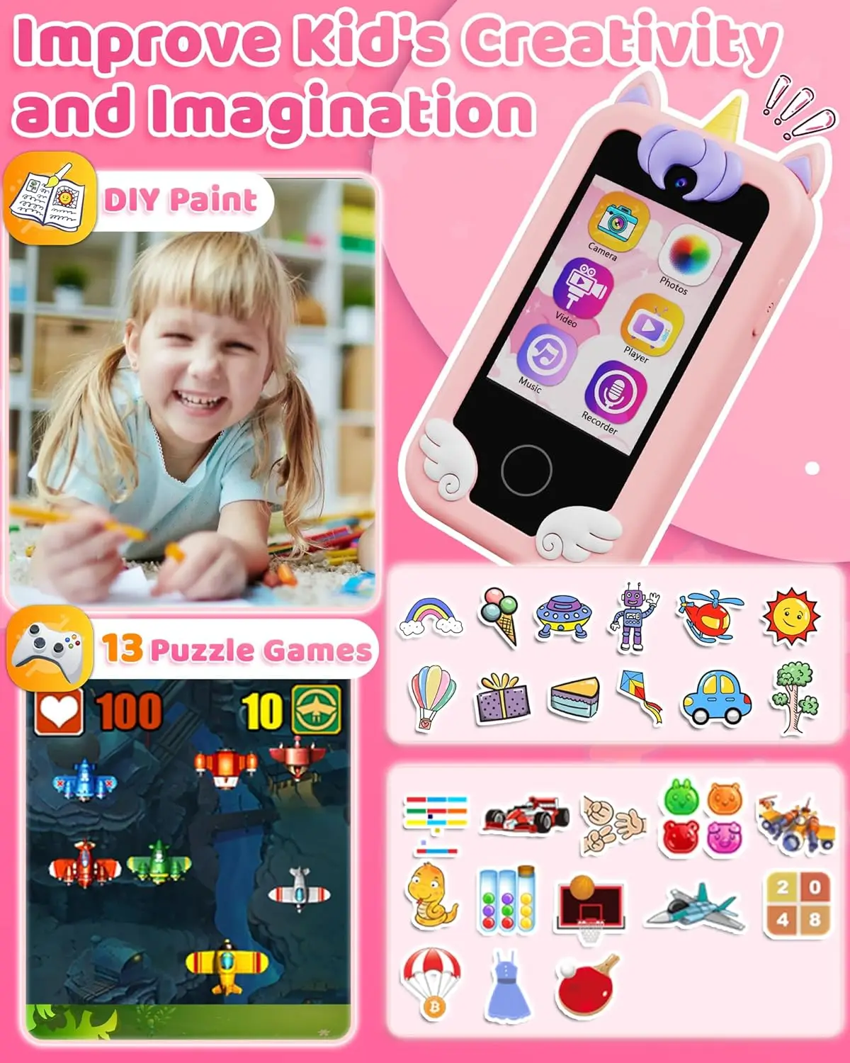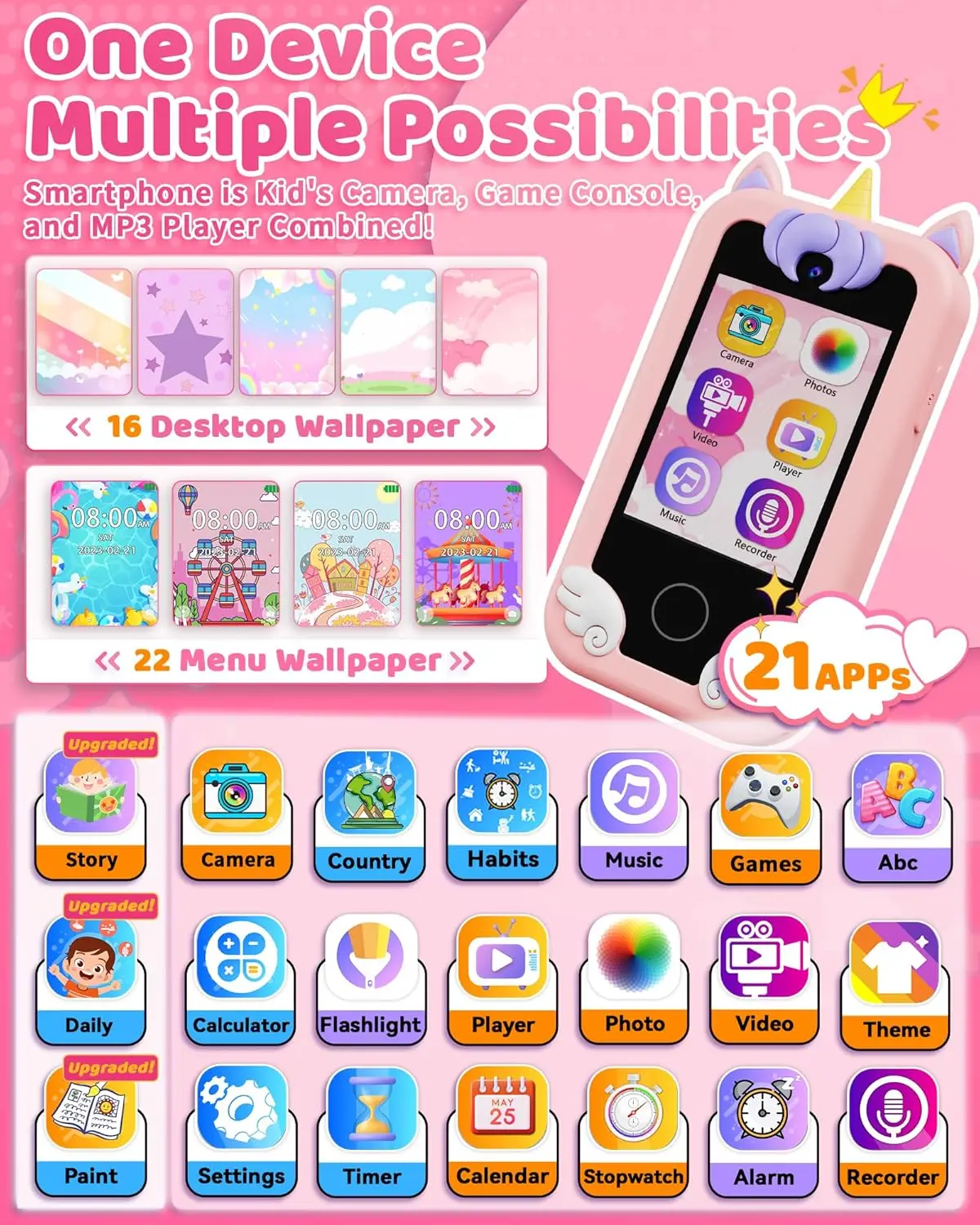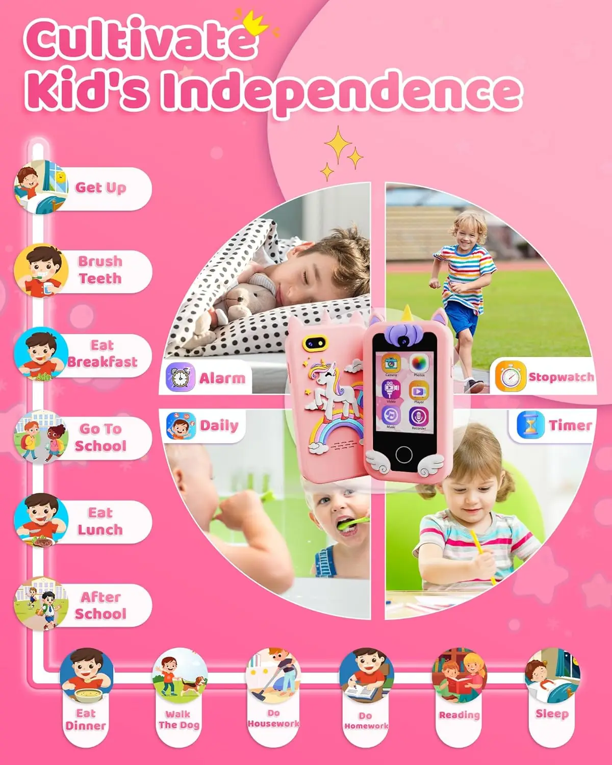 All-in-One & Easy to Use: Features include a built-in flashlight, timer, calculator, habit tracker, and paint tool. Designed for kids aged 3–8, this device helps improve time management and encourages creativity. Also includes 10 bedtime stories to help your child fall asleep. Give your child their toy phone and fulfill their needs in a fun way!