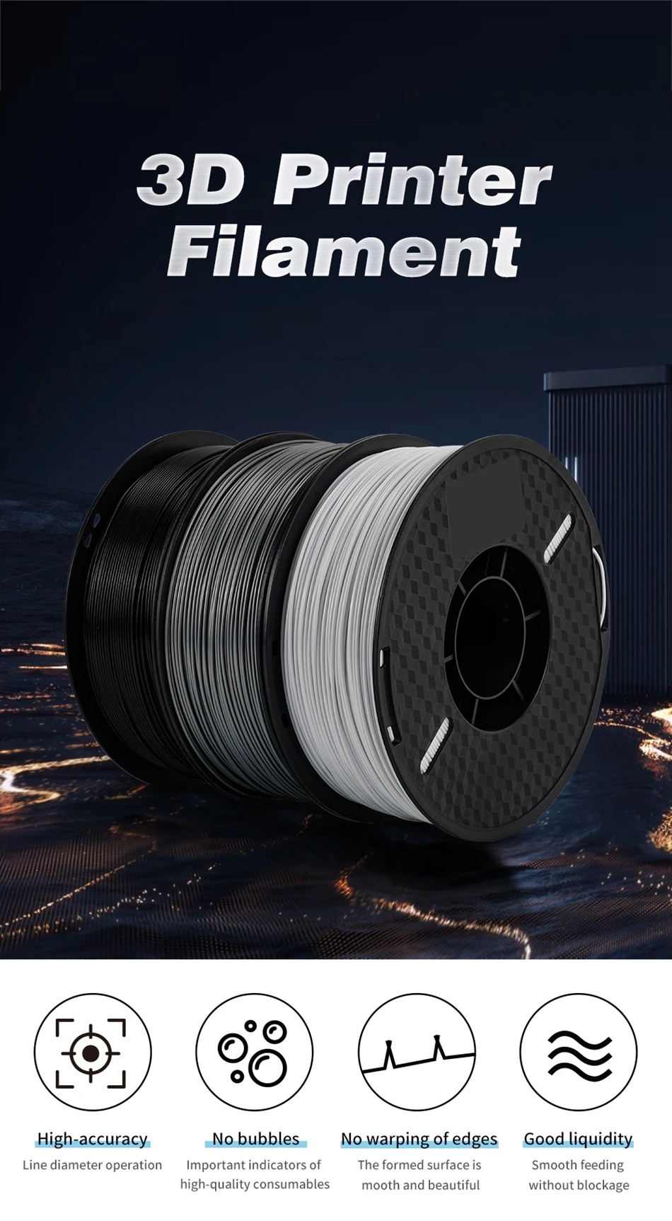 Suitable for equipment with a heated bed, this filament can print models with strong requirements for print strength and those needing post-processing such as dyeing, polishing, and electroplating. It is also suitable for making small parts.