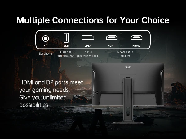 - Versatile Connectivity – Equipped with 2× HDMI 2.0 ports (QHD up to 144Hz) and 1× DisplayPort 1.4 (QHD up to 180Hz, overclock up to 185Hz) to easily connect your PC, laptop, or gaming console.
