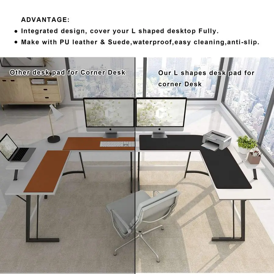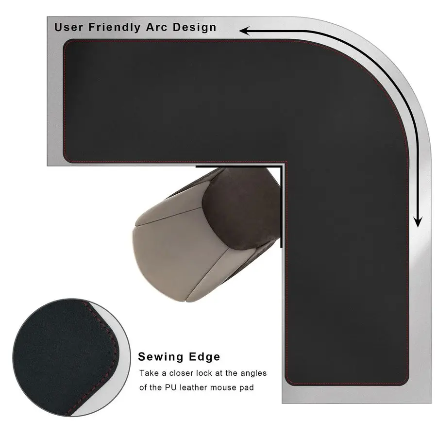 L Shape Corner Desk Mat 43.3-inch PU Leather