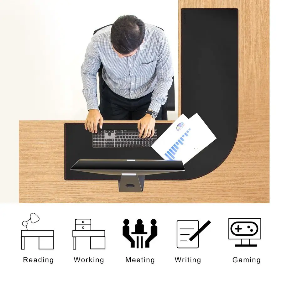Designed to fit L-shaped desk layouts, this corner desk pad provides a comfortable surface for work, gaming, writing, and general computer use. Its wide shape helps protect more of your desktop while giving you room to move freely across multiple work zones. It is a practical option for home offices, business setups, study spaces, and creative workstations.