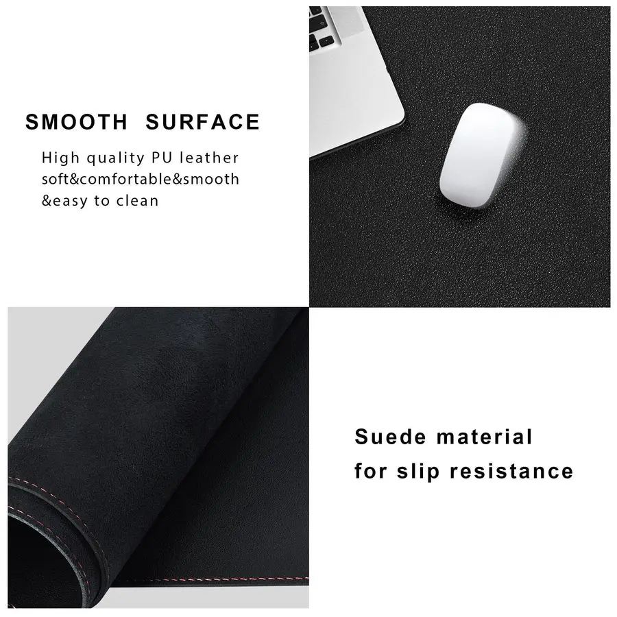 The PU leather top surface is smooth, durable, and waterproof, making it suitable for use as both a mouse pad and a writing surface. It supports steady mouse movement and precise control while also helping shield your desk from scratches, spills, stains, dents, and everyday wear. This added protection is especially useful for glass, wood, and other premium desktop surfaces.