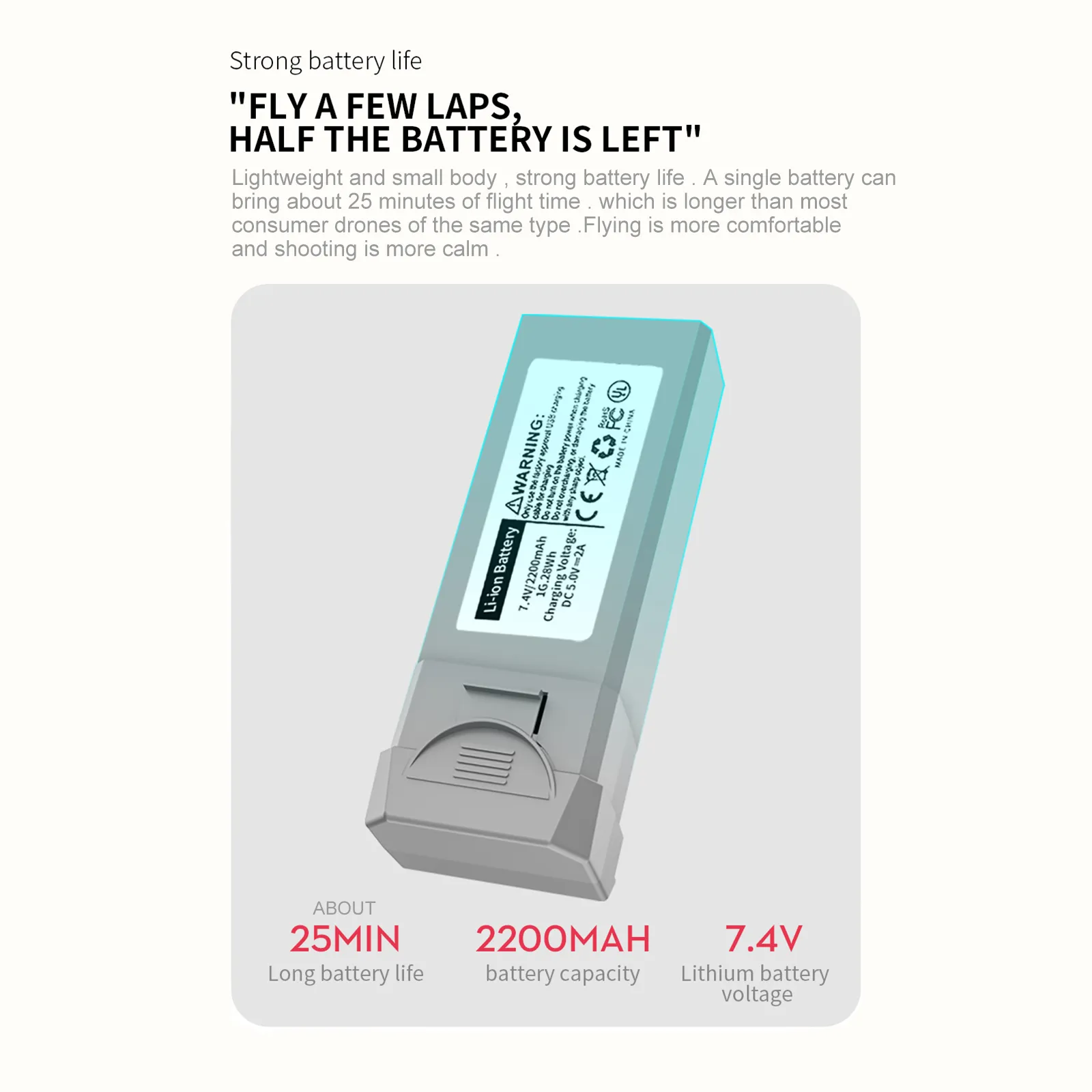 - Type: 7.4V 2200mAh lithium battery (included)
