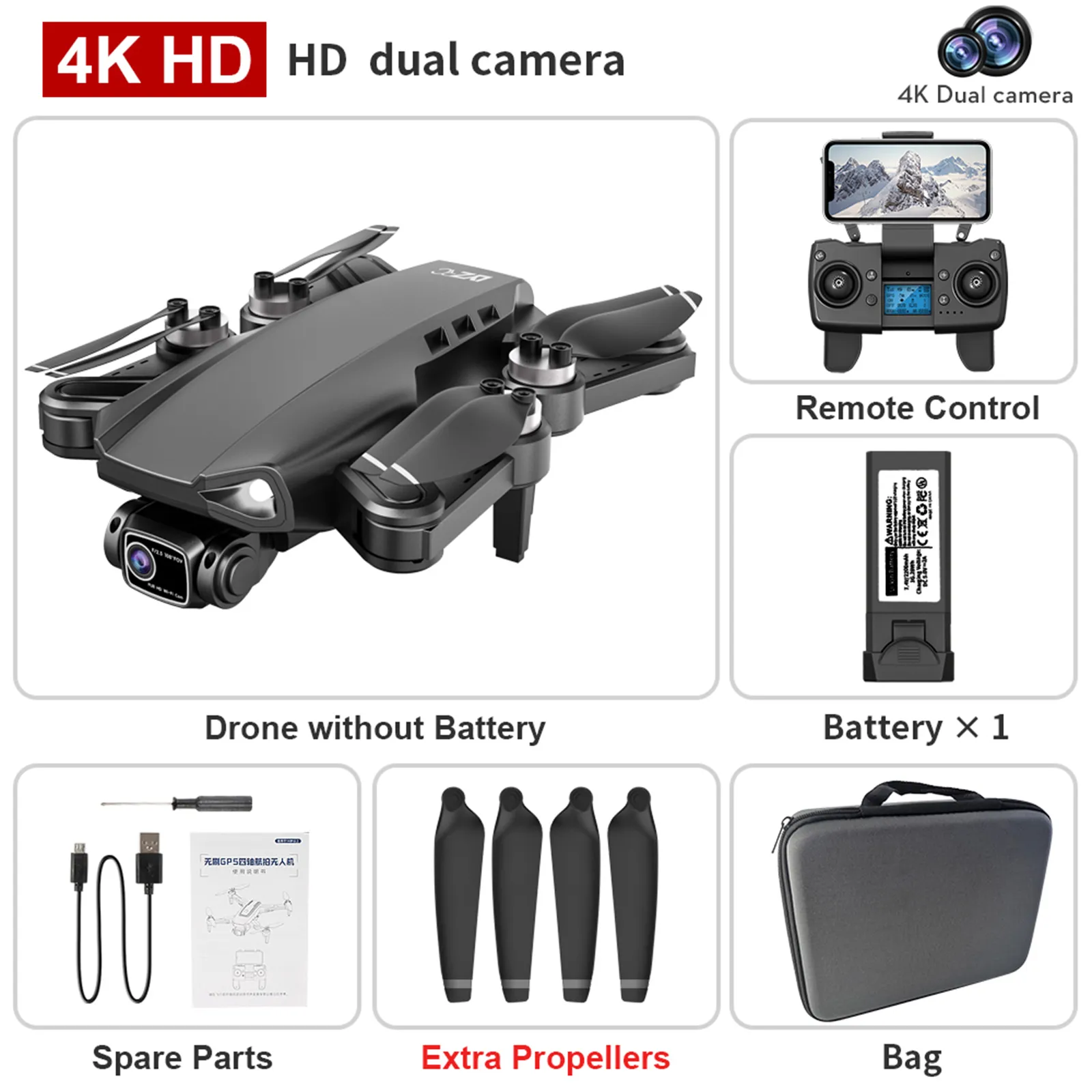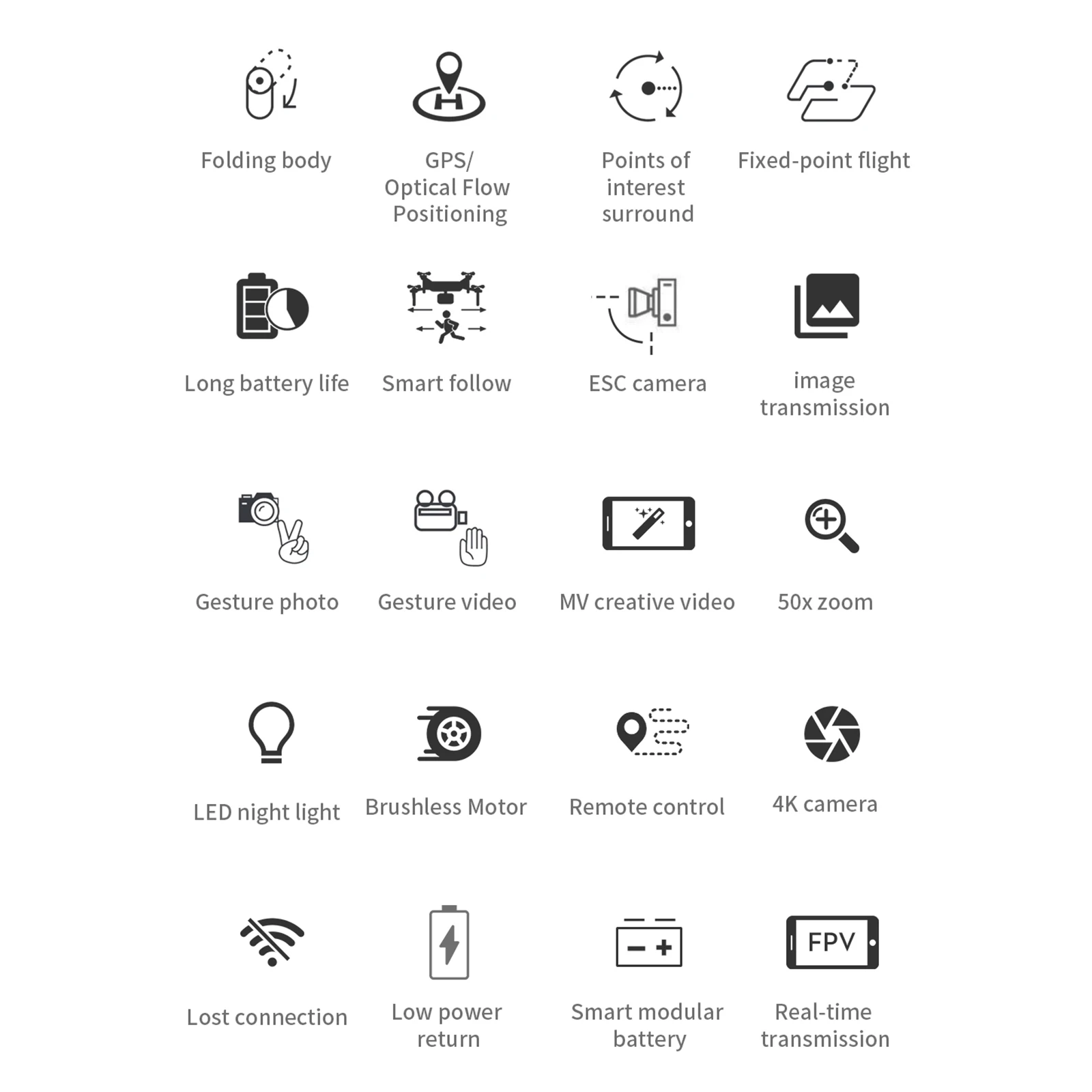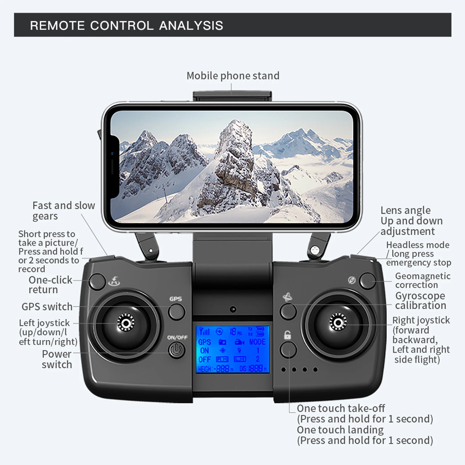 - GPS Return: One-key return to the take-off point, automatic return when the battery is low or the signal is lost.