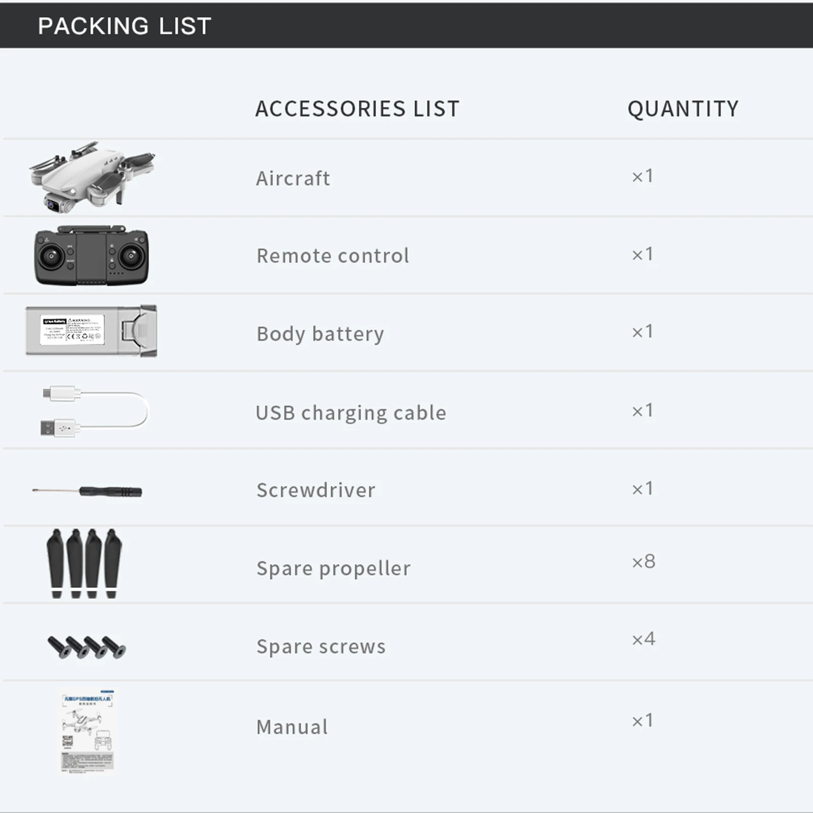 - 8 Spare Propellers