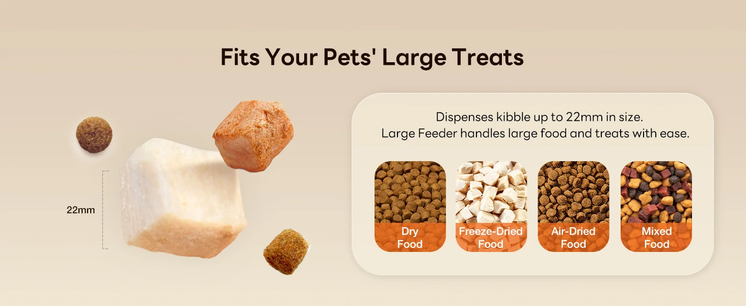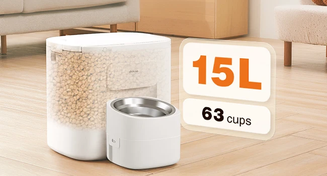 15-liter extra-large food storage tank – twice the size of most feeders – eliminates feeding anxiety for large-breed dogs. Easily pour in 3-4 bags of dog food at once, enough to feed a medium or large dog for 10 to 15 days.