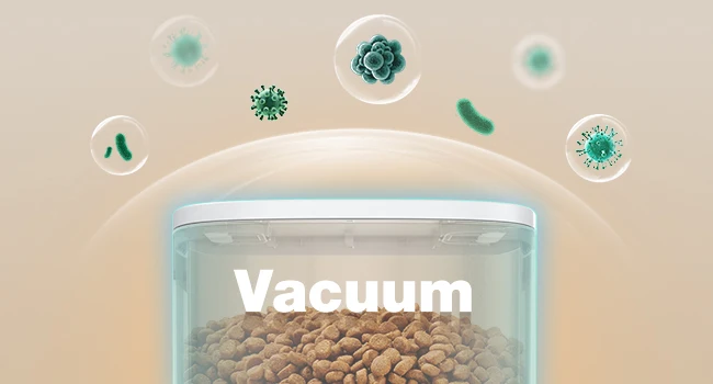 The built-in vacuum mode removes air to create a low-oxygen environment. This slows down oxidation and protects dog food from moisture, mold, bacteria, and harmful fungi, preserving its flavor and nutrients.