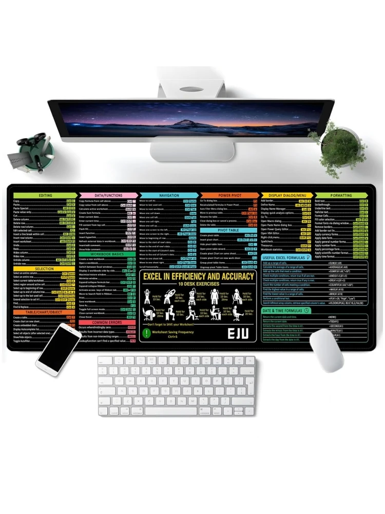 Designed to boost accuracy, efficiency, and comfort, this Excel shortcut desk mat is more than a mouse pad—it is a daily productivity tool. Whether you are managing spreadsheets, analyzing data, or working on reports, you will not need to search for a shortcut again.