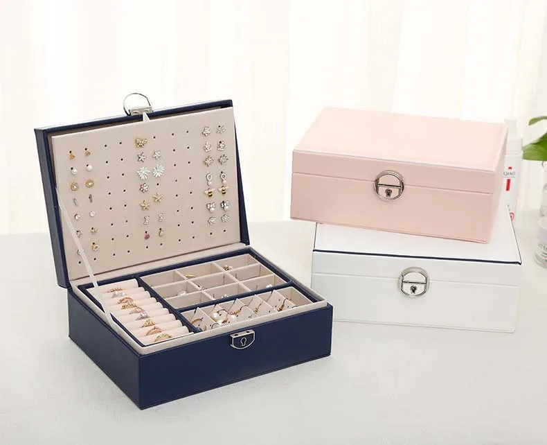 Large Leather Jewelry Box Ring Earring Organizer