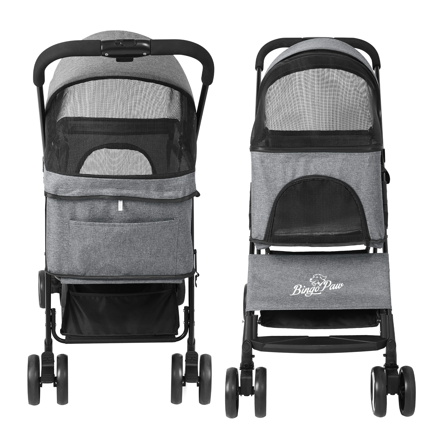 The one-press folding mechanism allows the trolley frame to collapse quickly with one hand and requires no tools. Its compact design makes it easier to store in a garage, closet, or car trunk for travel and outdoor trips. The stroller is detachable, allowing the pet compartment to be removed and used as a pet carrier.