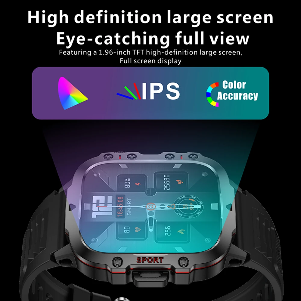Upgrade your fitness routine with this advanced Smartwatch, designed with a 1.96-inch full-touch display that makes navigation smooth and viewing easy. This multi-functional smartwatch is not just a fitness companion but an all-in-one assistant, featuring Bluetooth calling and quick response functions for seamless communication on the go.