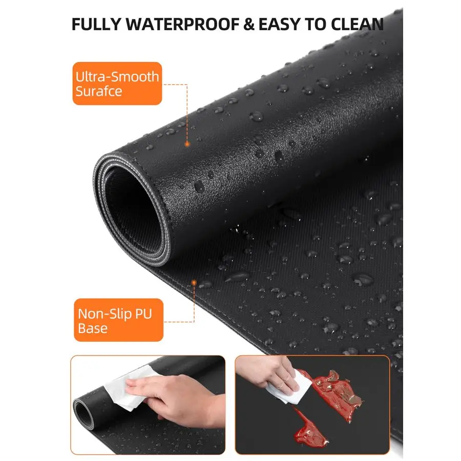 Made with durable PU leather for smooth mouse control and added protection against scratches, stains, spills, heat, and wear. Wipes clean with a rag.