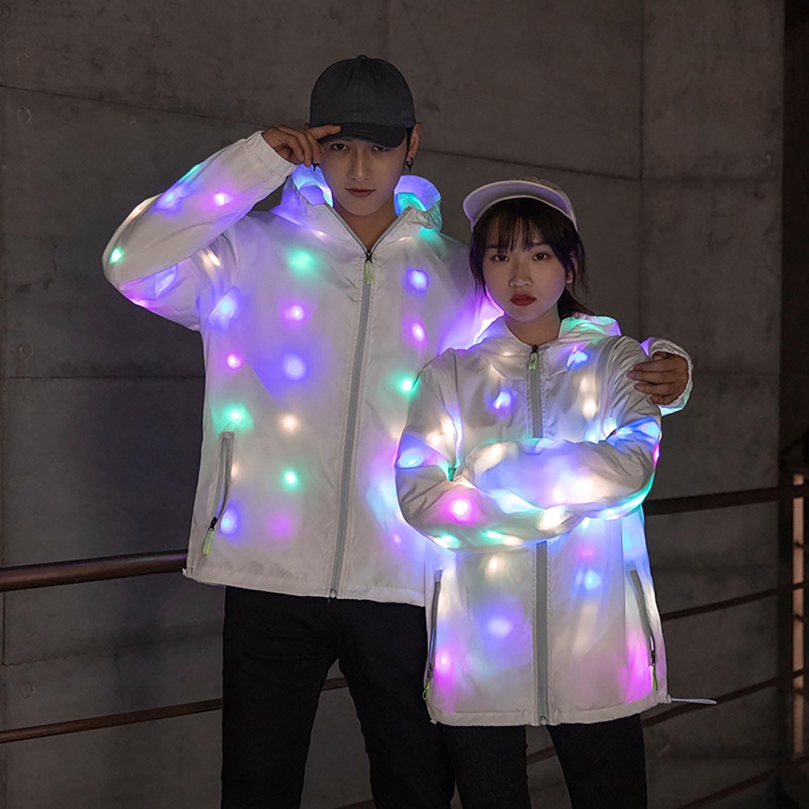 LED Glowing Hooded Jacket Mens Womens Luminous Coat