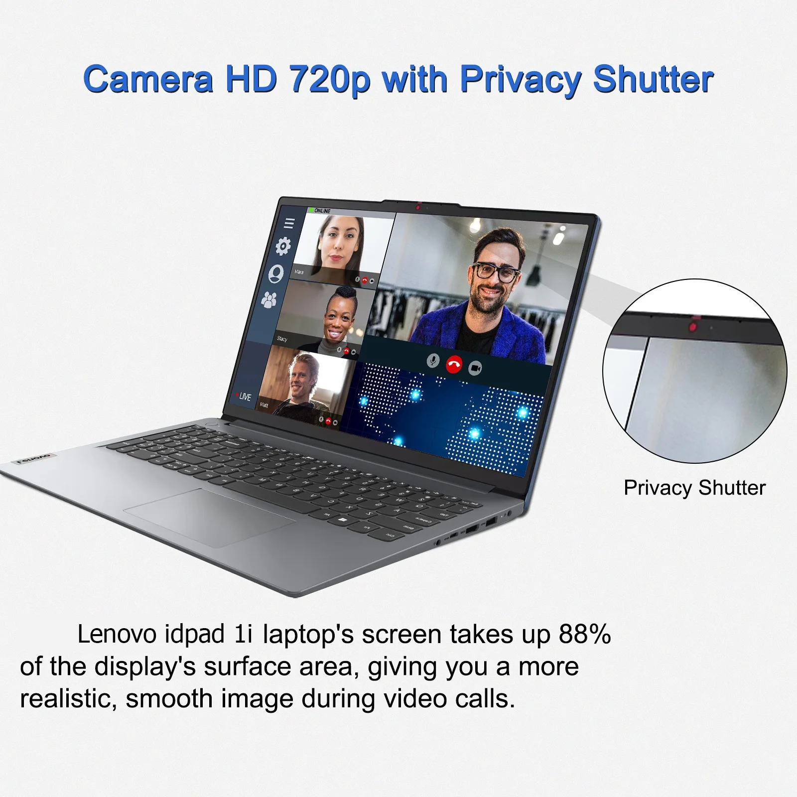 Browse, explore, and connect with confidence on the Lenovo IdeaPad 1 powered by an ultra-fast Intel Core i3-1215U Processor. The IdeaPad 1 packs responsive performance in a thin and compact 17.9 mm chassis, making multitasking on-the-go a breeze. Get the most out of your device with a frameless display for more screen and Dolby Audio speakers, along with 10 hours of battery life and rapid charge. Great for video calls, the 720P camera comes with a privacy shutter to keep out spying eyes, as well as Smart Noise Cancelling to eliminate background noise.