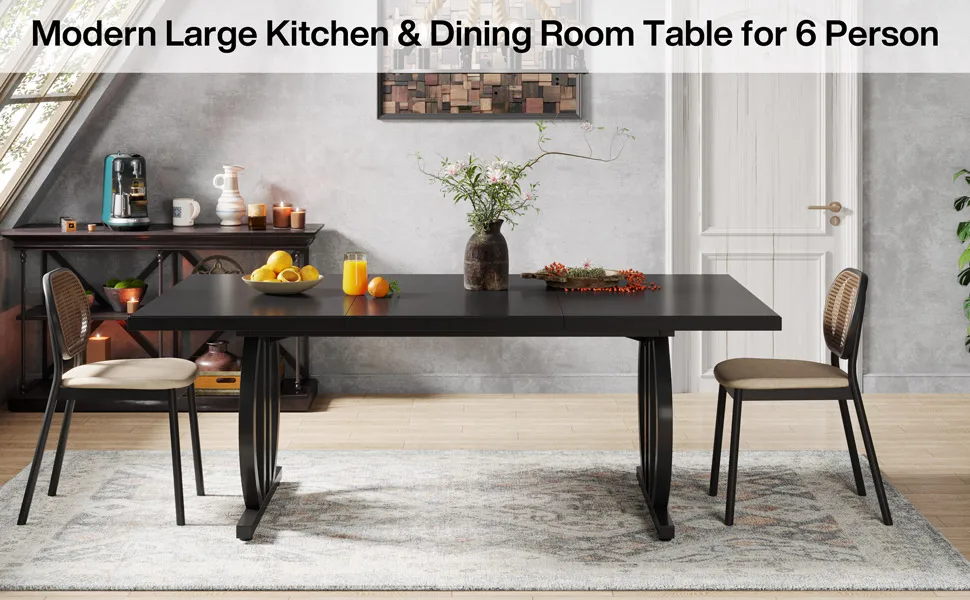 - Timeless minimalist style: This black dining table combines a clean, minimalist design with a sleek all black finish, creating a sophisticated centerpiece that works with many interior styles and stays in fashion over time.