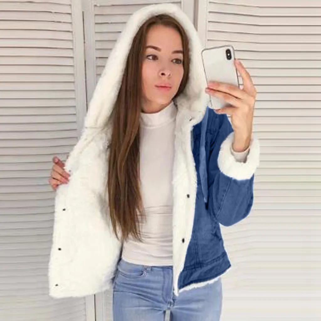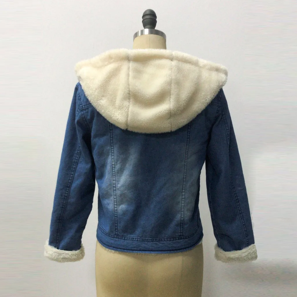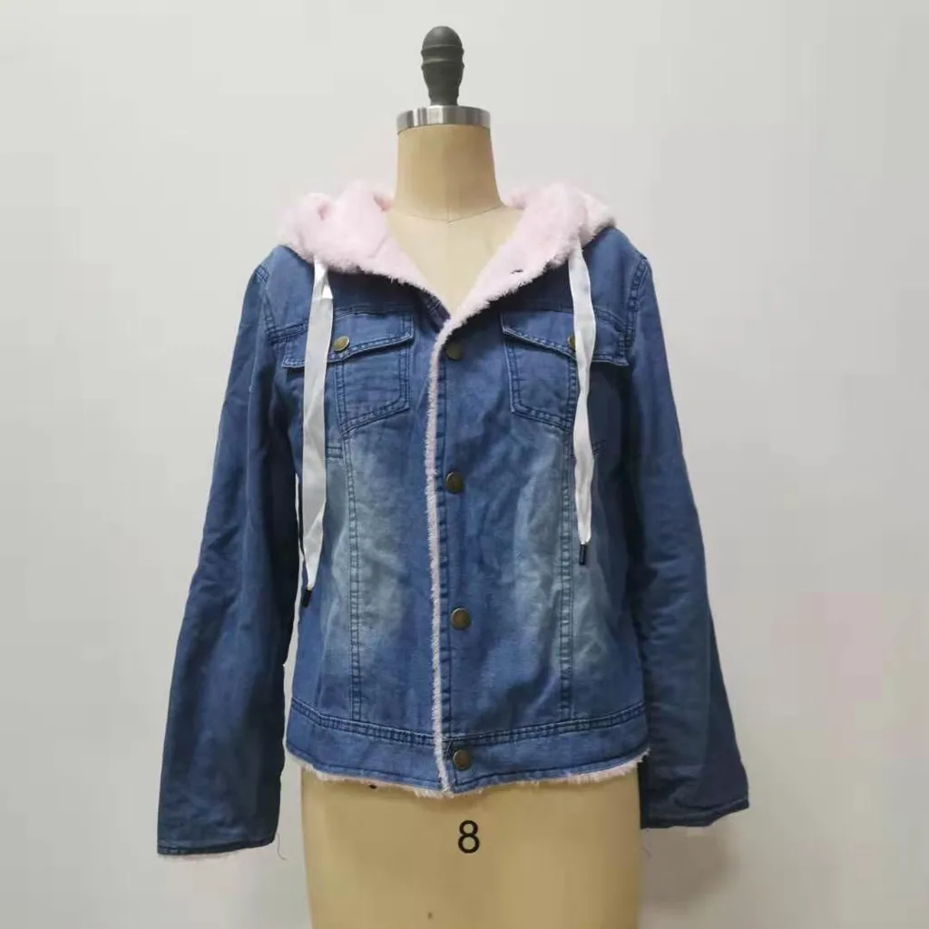 Long Fleece Denim Hooded Jacket