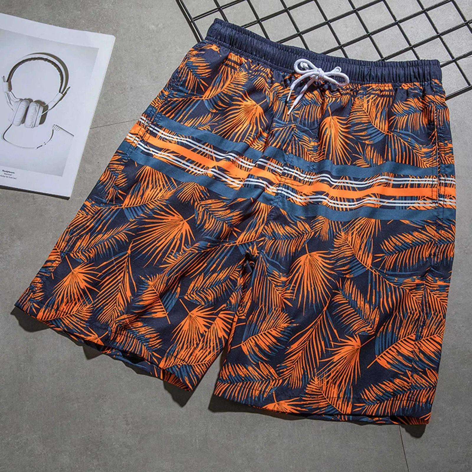 Comfortable beach shorts: Polyester, quick-drying, breathable, lightweight breathable.