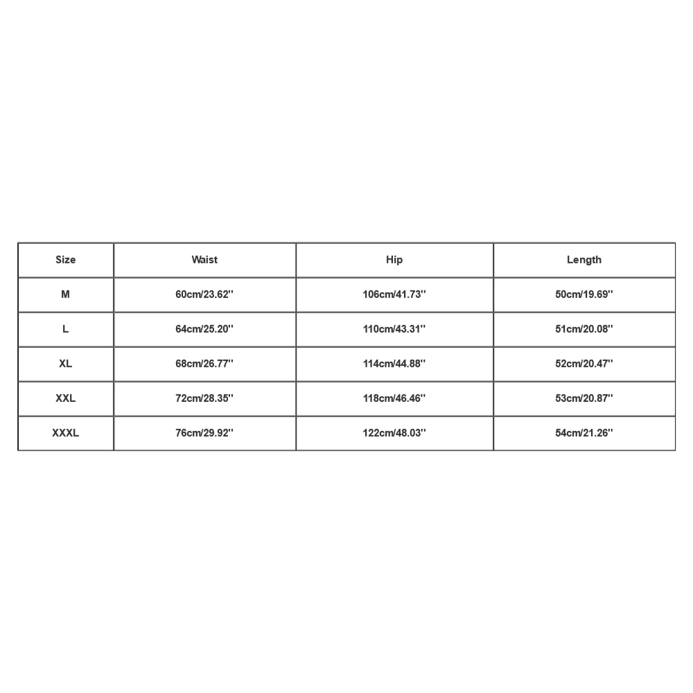 - XL: Waist: 68cm (26.77″), Hip: 114cm (44.88″), Length: 52cm (20.47″)