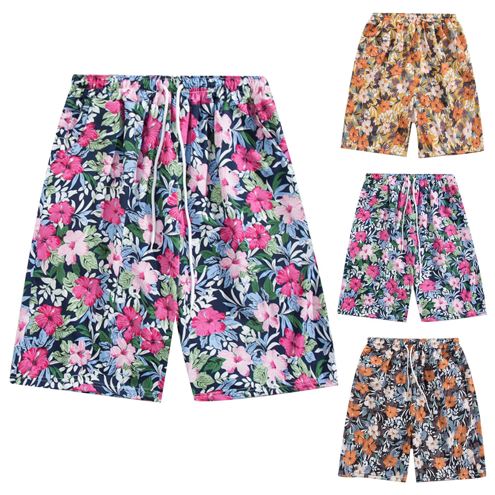 Features: Drawstring, adjustable waist, floral print, shorts, elegant, and fashionable style.