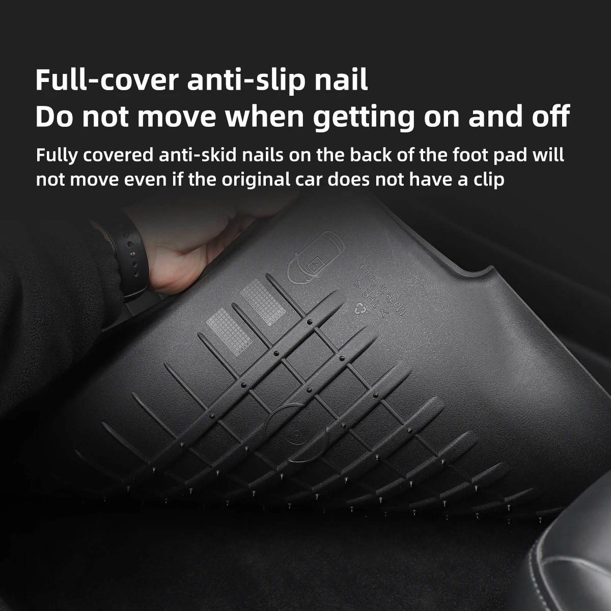 These mats combine functionality and style, ensuring your Tesla remains pristine and comfortable no matter the driving conditions. The anti-slip backing keeps the mats securely in place, preventing shifting during drives. Designed for a seamless fit, they integrate beautifully into your Tesla’s interior, enhancing the vehicle’s luxurious feel.