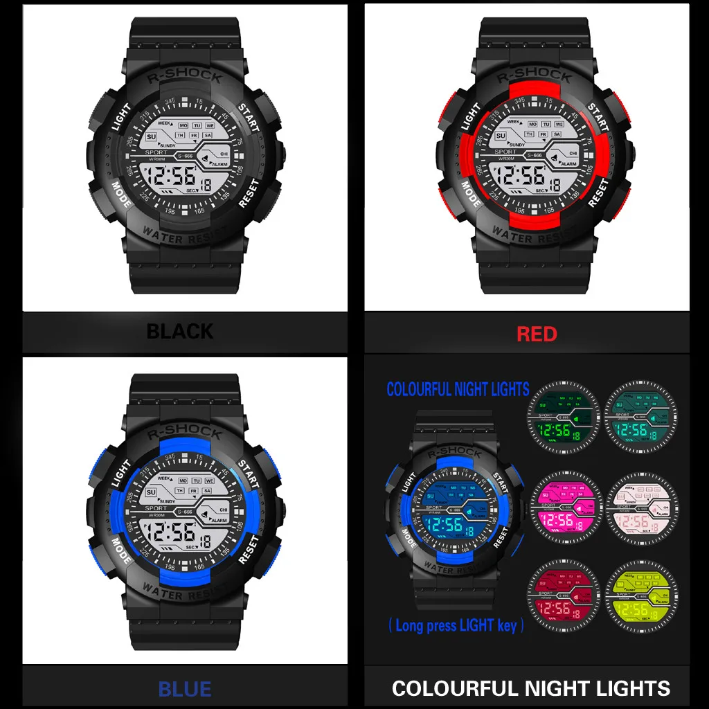 Luminous 7-Color Sports Watch for Men Fashion Gift