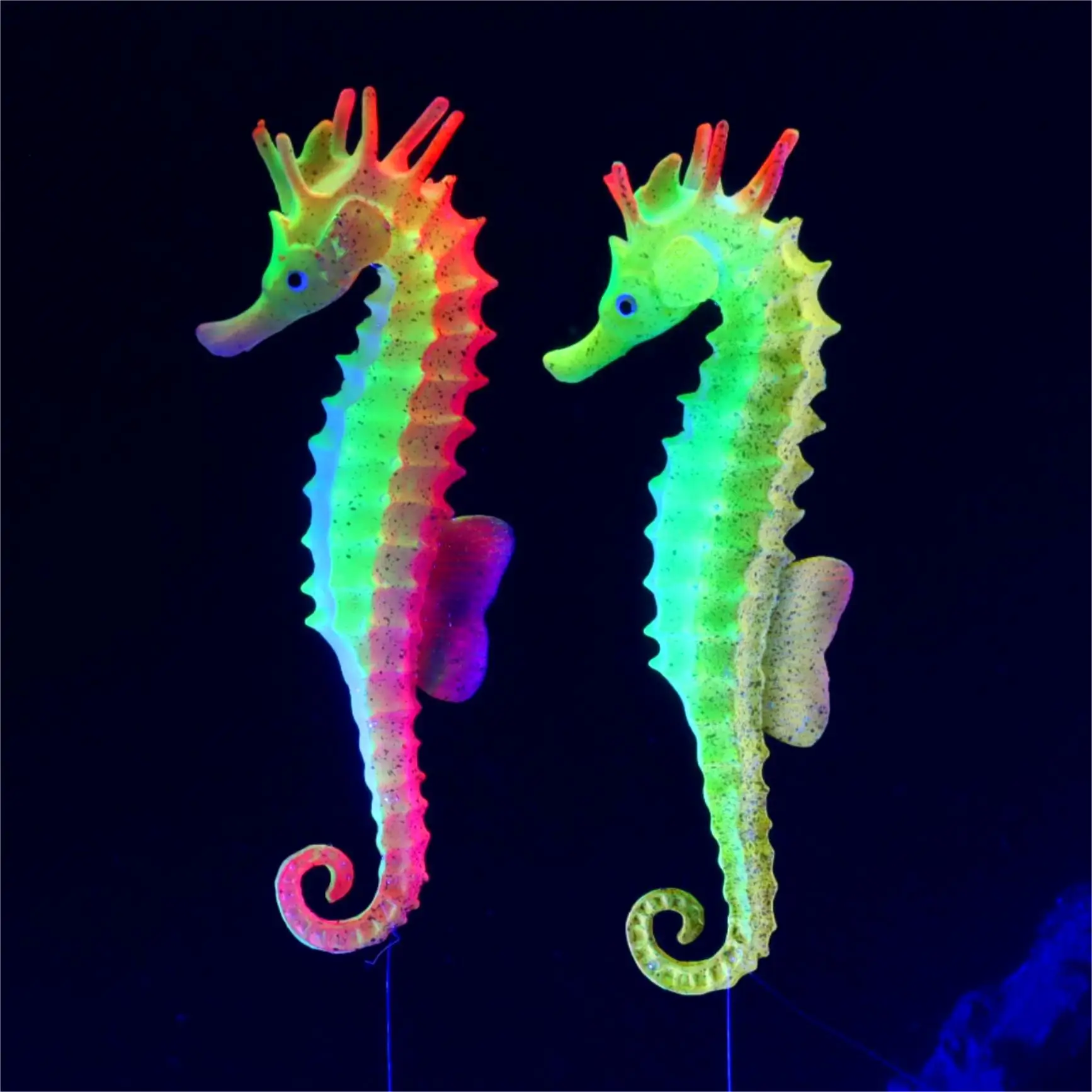 Enhance your aquarium’s aesthetic with this stunning Glowing Artificial Seahorse Decoration. Designed for underwater charm, this silicone ornament mimics the beauty of real seahorses while adding a captivating luminescent effect to your fish tank.