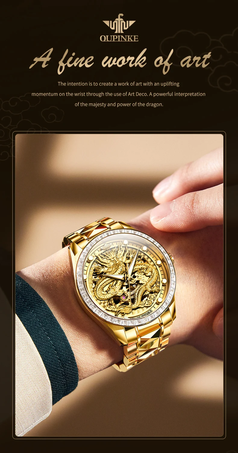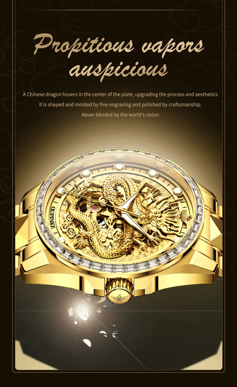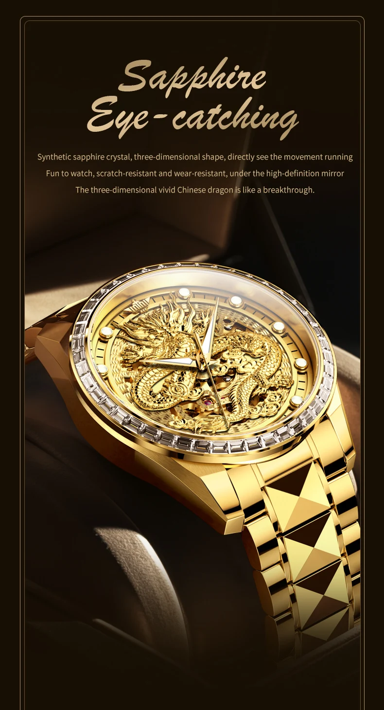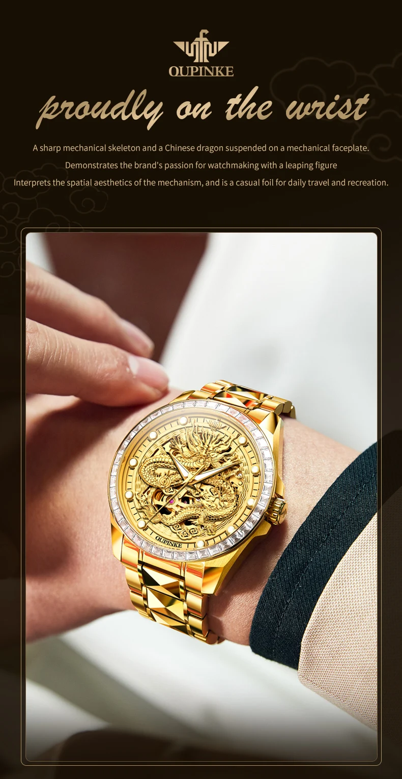 Luxury Golden Dragon Men’s Watch – OUPINKE 3276 Automatic