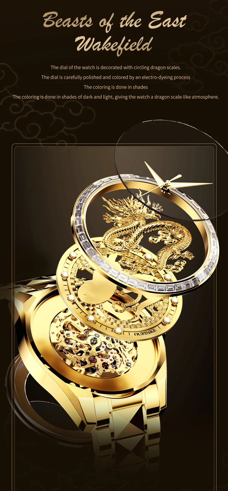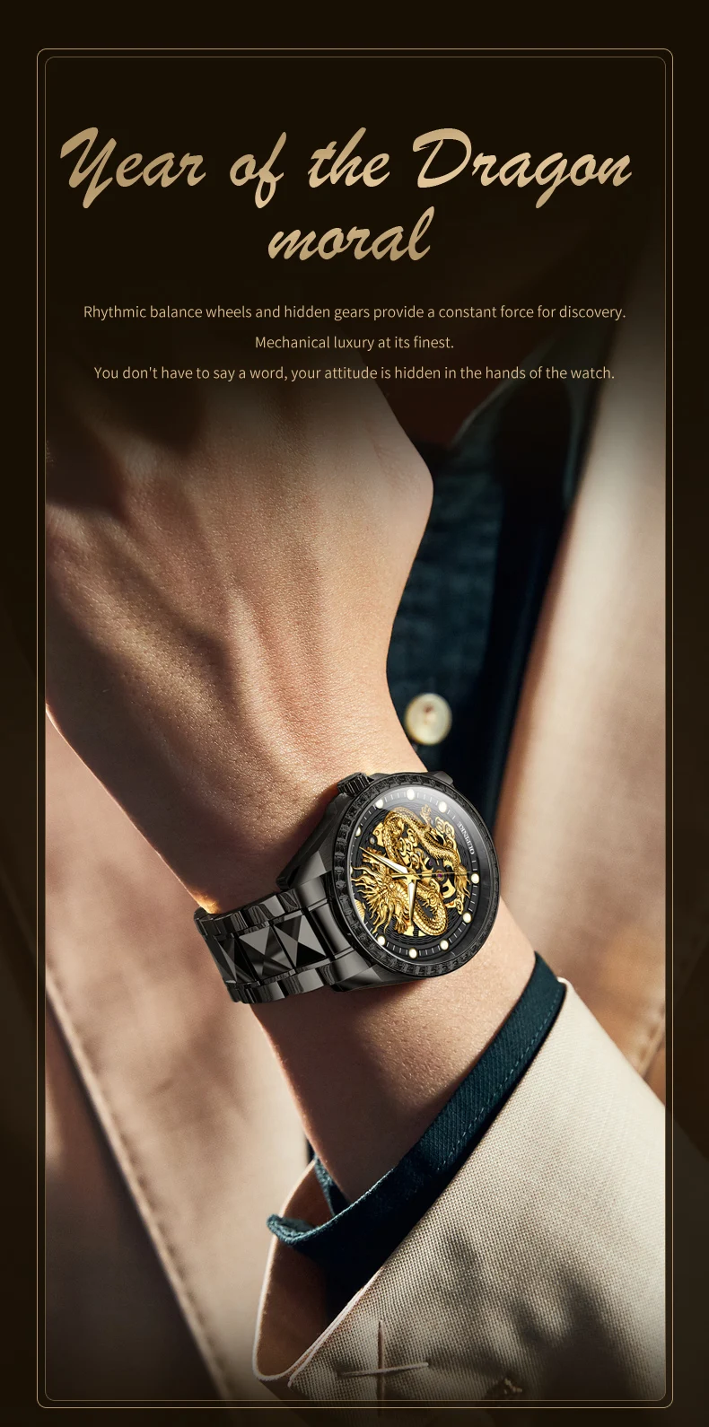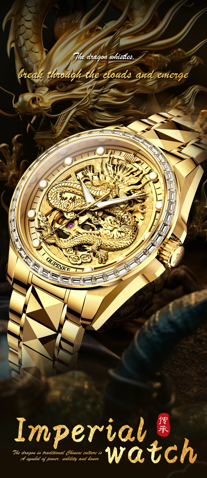 Luxury Golden Dragon Men’s Watch – OUPINKE 3276 Automatic