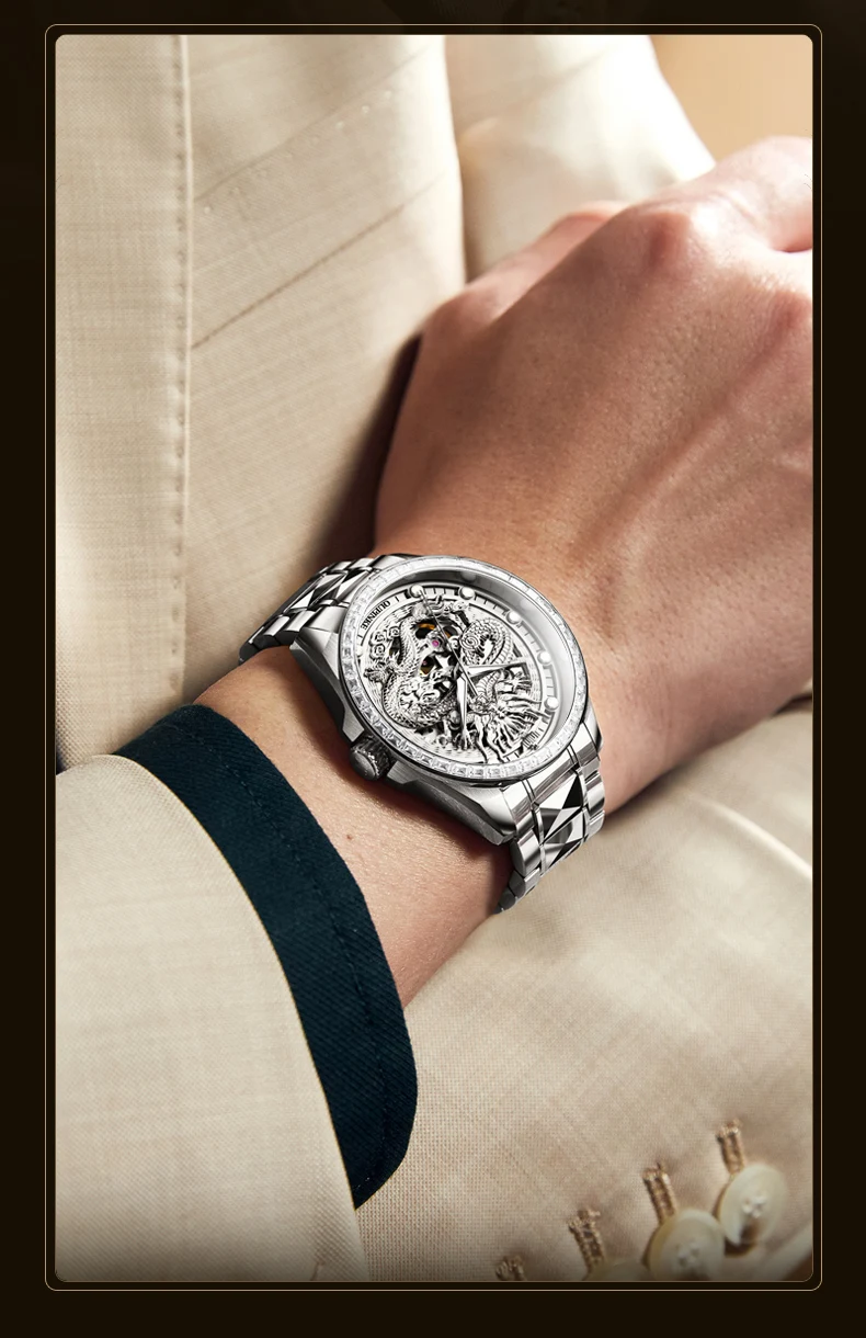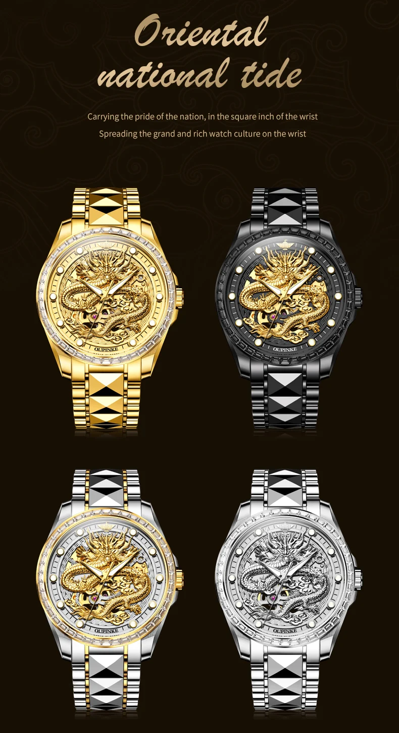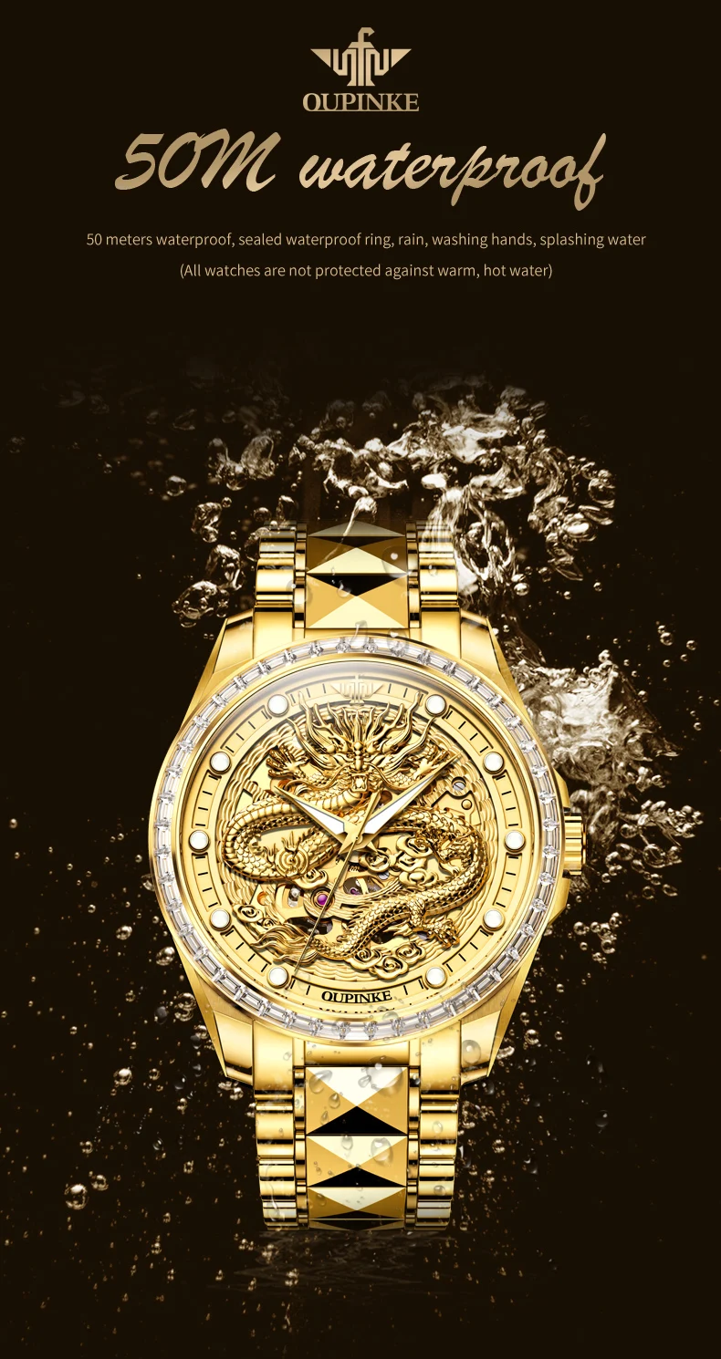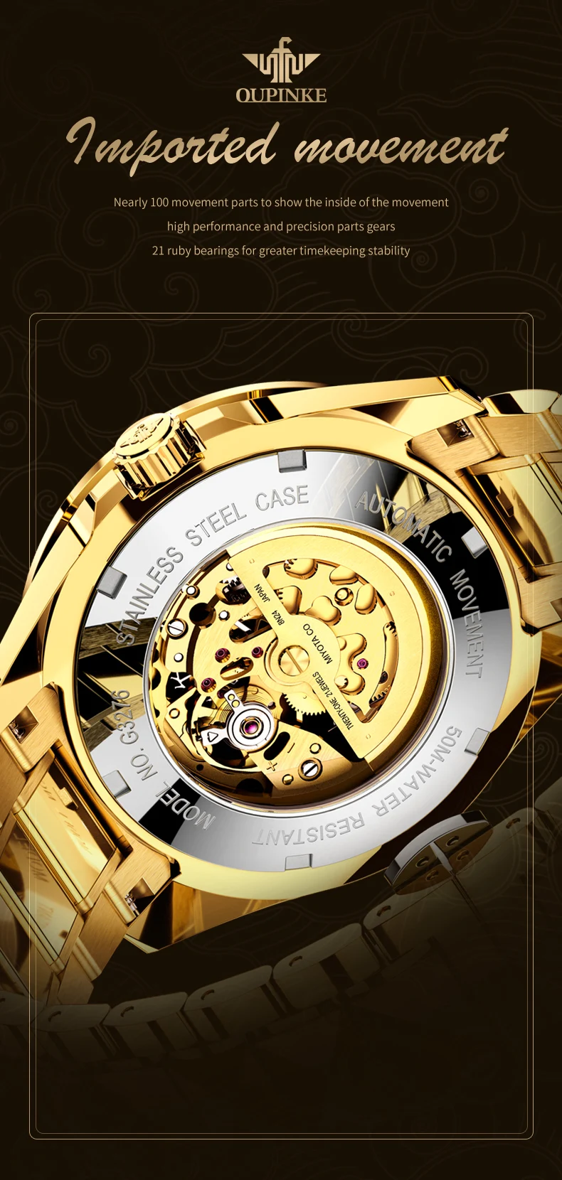 Luxury Golden Dragon Men’s Watch – OUPINKE 3276 Automatic