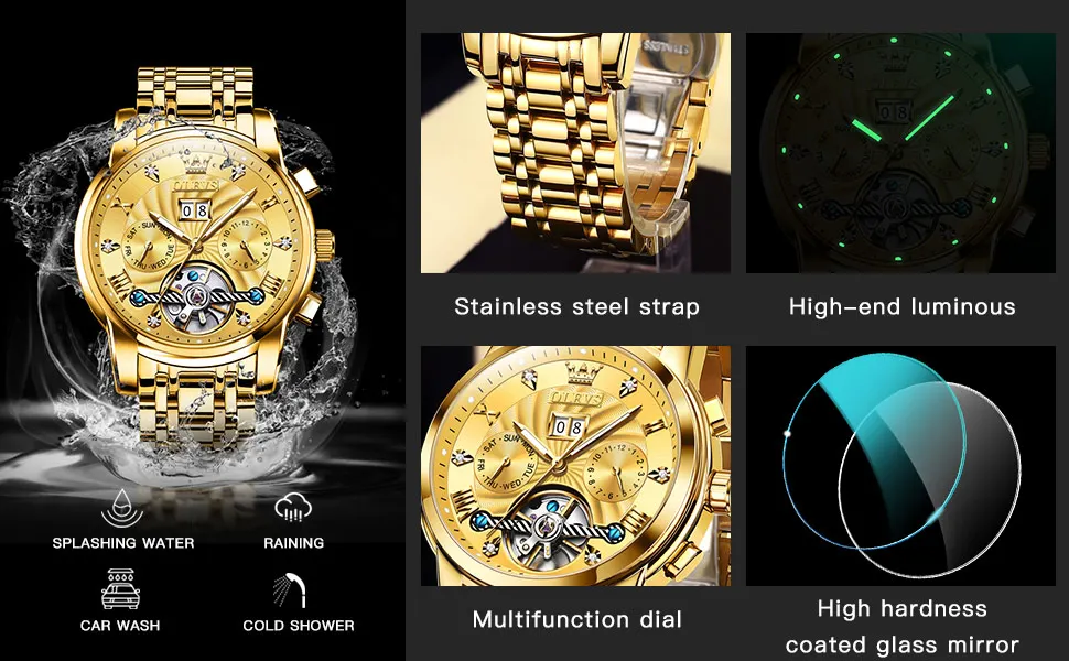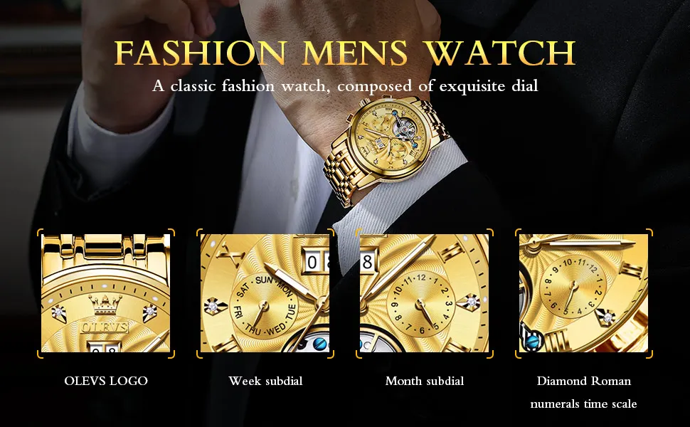 The OLEVS watch is not just a timepiece; it’s a statement of luxury and craftsmanship. It features a waterproof design, making it suitable for all your adventures, whether you’re caught in the rain or enjoying water sports. The luminous hands and markers provide visibility in low light conditions, ensuring you’re always on time, day or night. The addition of a calendar function allows you to keep track of dates with ease, making this watch a practical choice for business professionals and casual wearers alike.