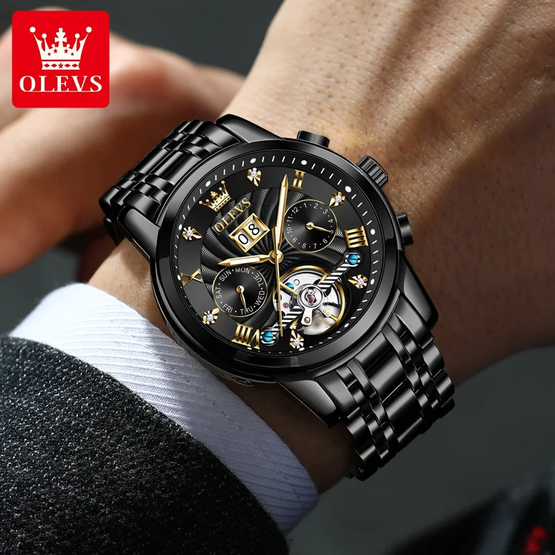 Luxury OLEVS Auto Steel Watch Waterproof & Luminous