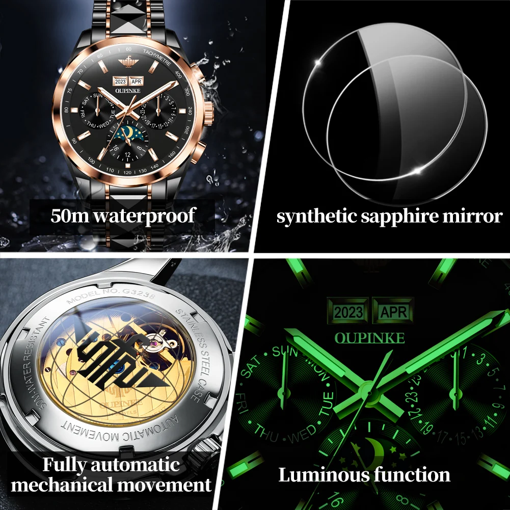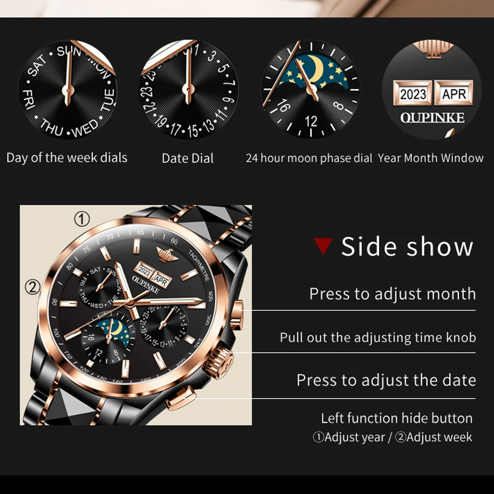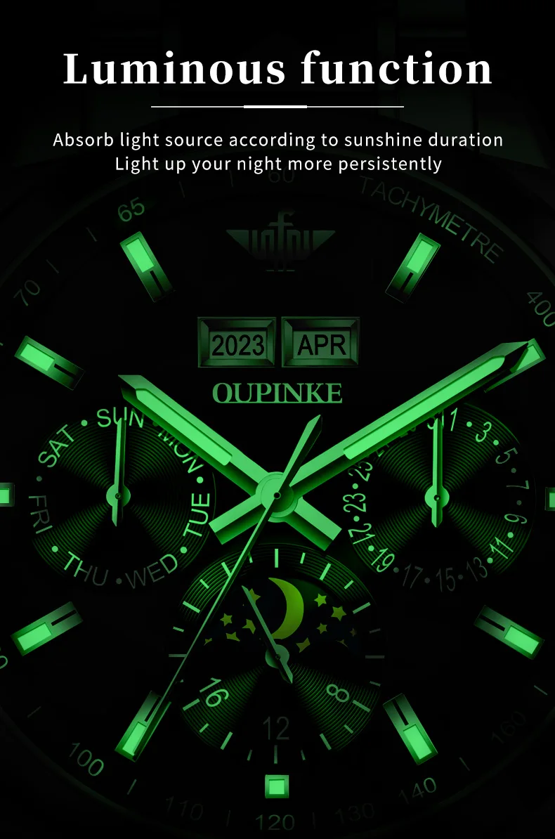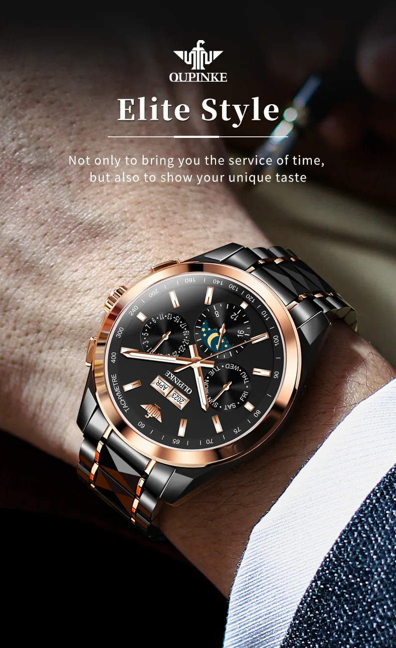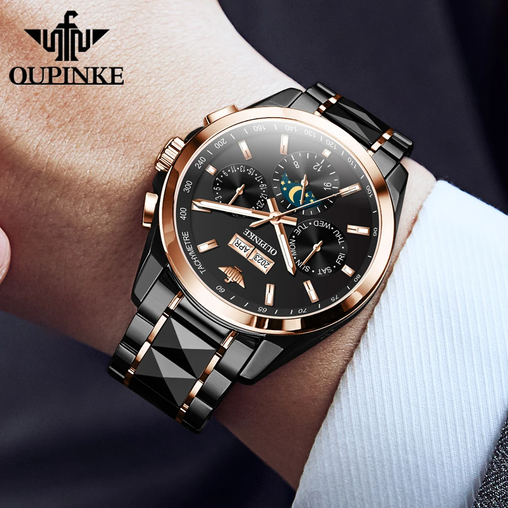 Luxury OUPINKE Moon Phase Watch – Waterproof & Sapphire