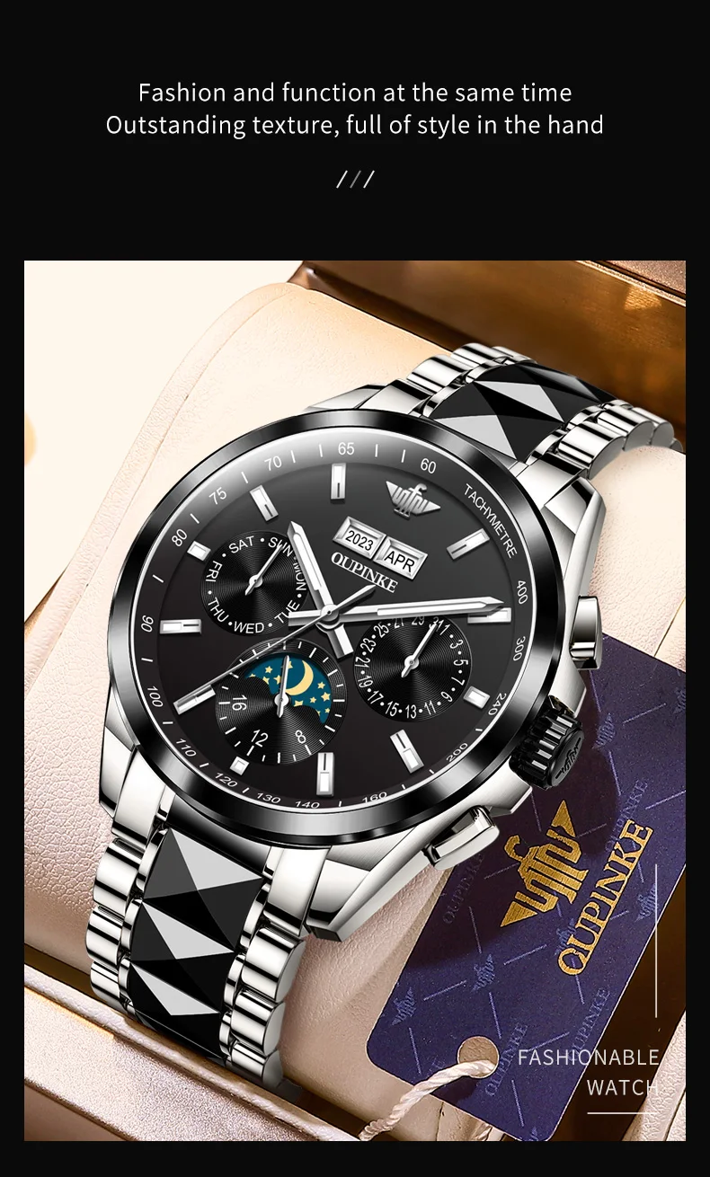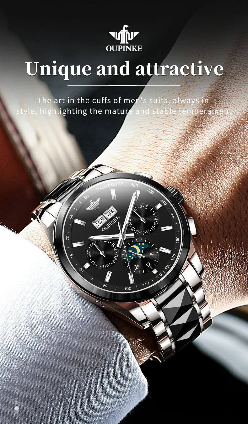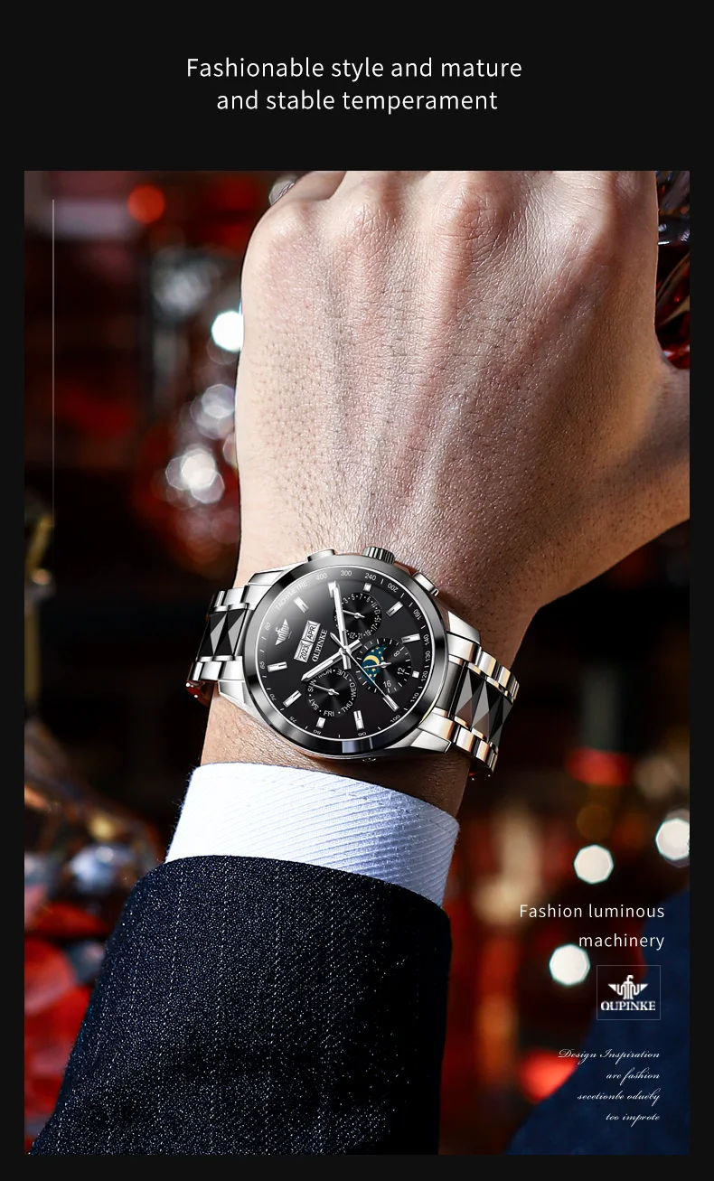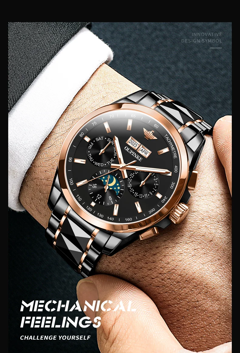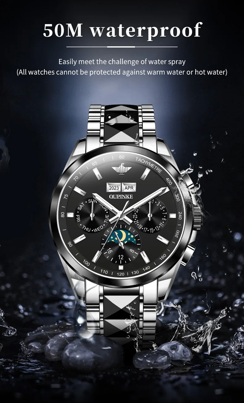 Luxury OUPINKE Moon Phase Watch – Waterproof & Sapphire