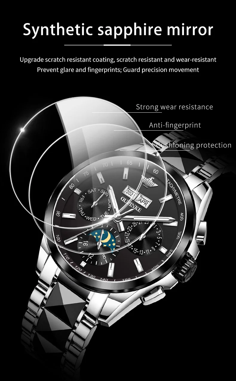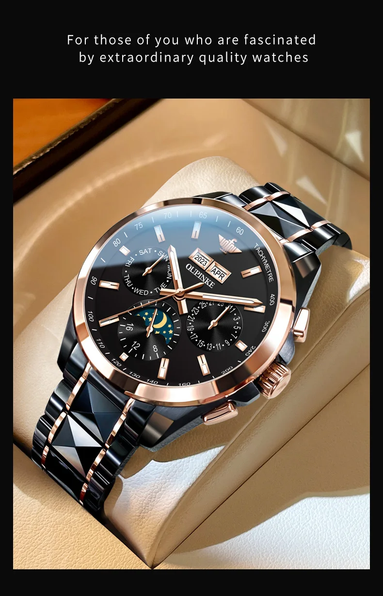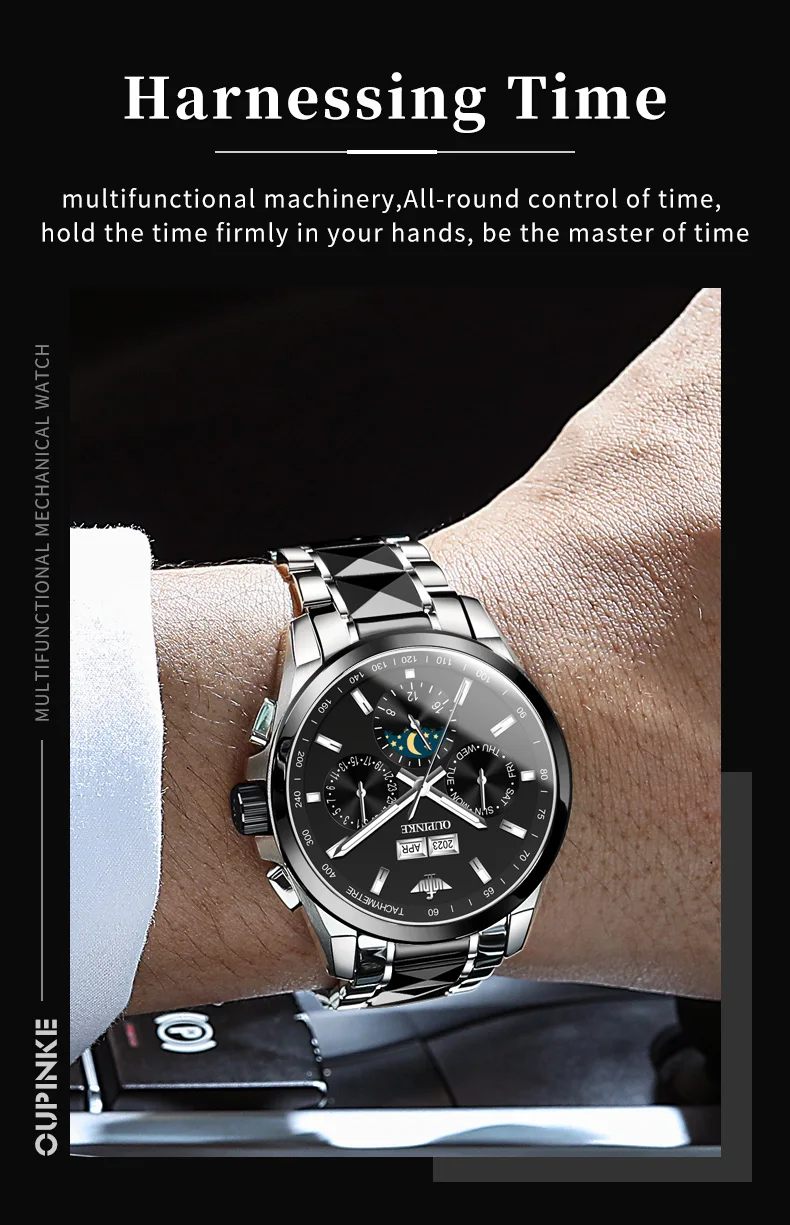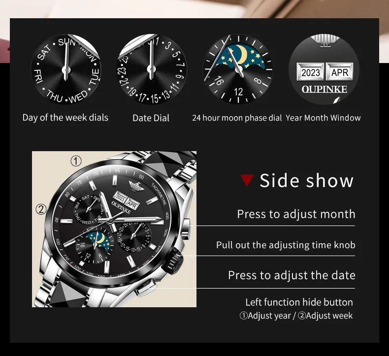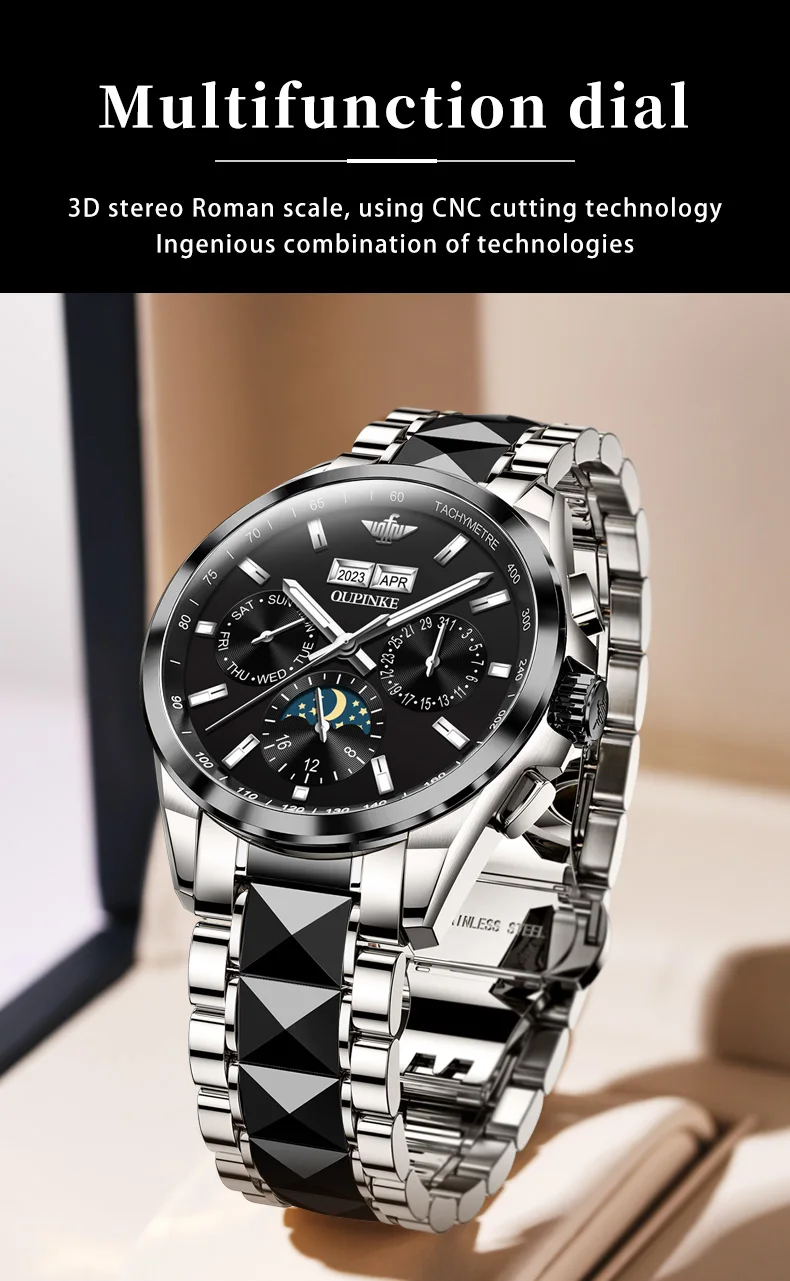 Luxury OUPINKE Moon Phase Watch – Waterproof & Sapphire