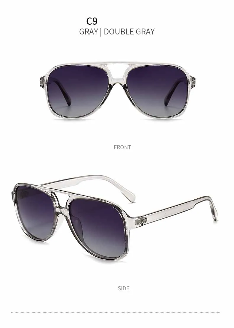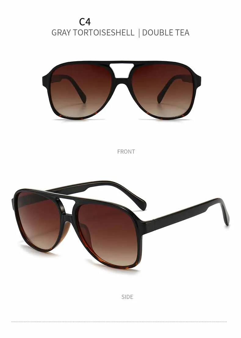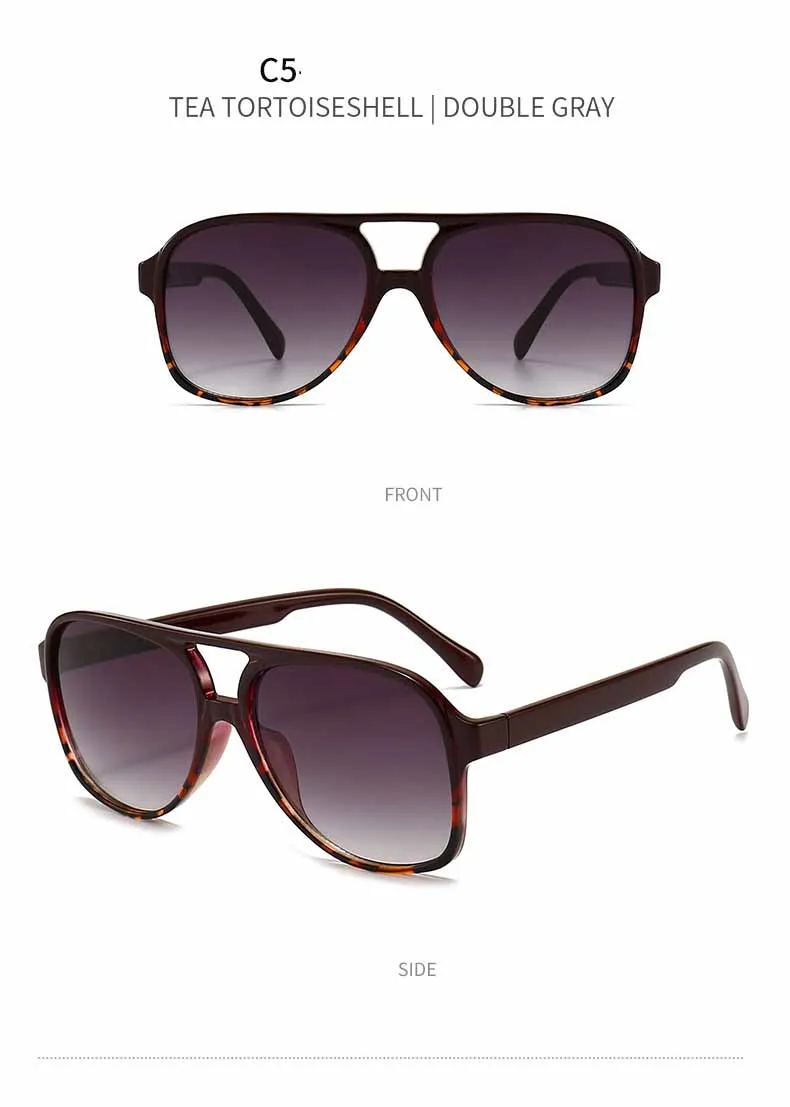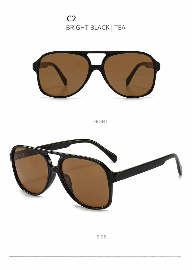 Our featured pair boasts polarized lenses that ensure unparalleled clarity and protection against the sun’s glare, making them perfect for driving or enjoying outdoor activities without compromising on comfort or visibility. The unique double-beam design not only adds an extra layer of durability but also infuses a touch of modernity into the classic square frame silhouette. These sunglasses are designed to elevate your style quotient while providing optimal eye protection.