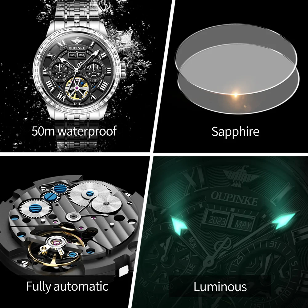 - Newest in OUPINKE, 100% Original Official Genuine, Fully Automatic Mechanical Wristwatch for Men
