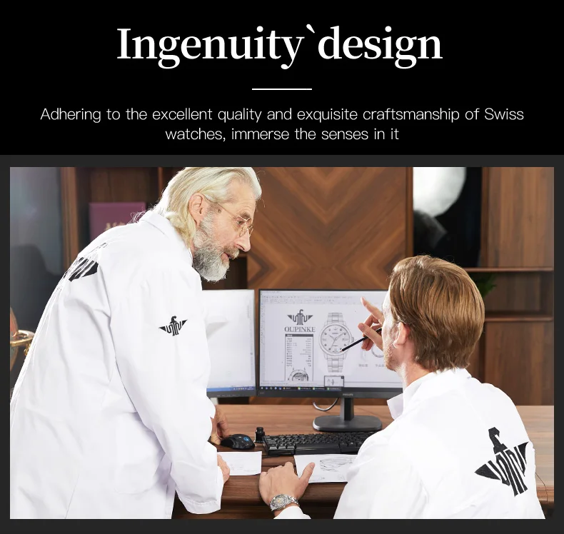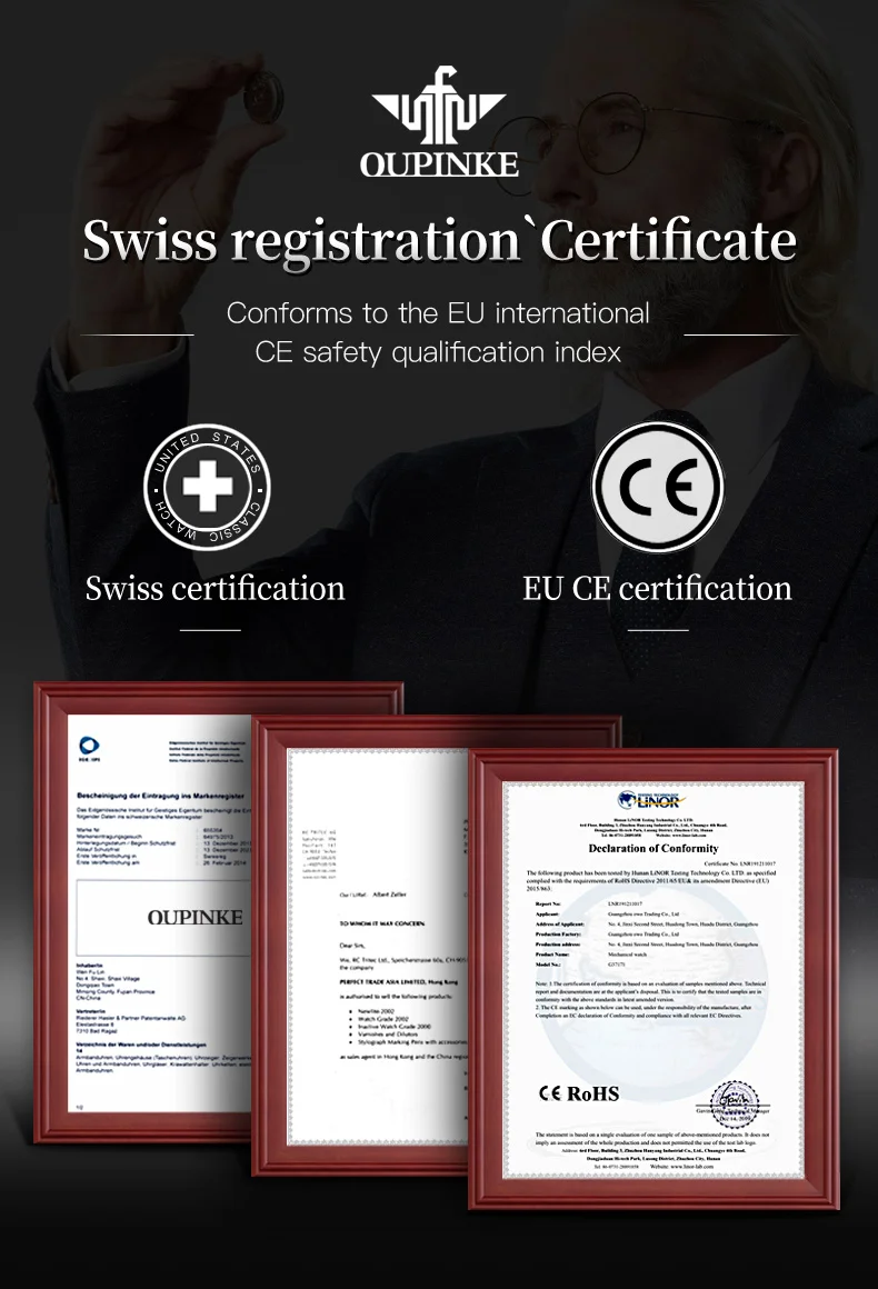 The OUPINKE watch is crafted with attention to detail, featuring a round case shape that exudes classic sophistication. With a case thickness of 11mm and a band width of 20mm, it strikes the perfect balance between bold presence and comfortable wear. The band is made of high-quality stainless steel, complemented by a leatherette box for storage, reflecting the brand’s commitment to luxury and durability.