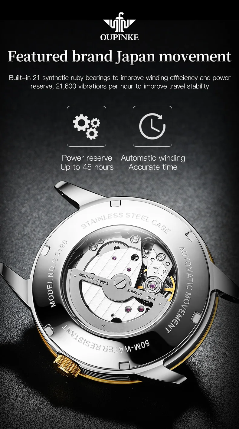 This timepiece is not just a watch; it’s a statement of style and a testament to the wearer’s discerning taste. Whether you’re dressing up for a special occasion or looking for a reliable daily companion, the OUPINKE Automatic Watch is designed to impress. Its waterproof capability ensures it can accompany you on every adventure, from formal events to casual outings.