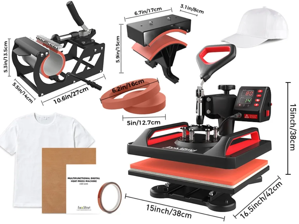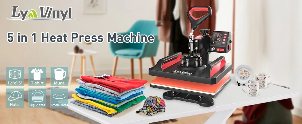 Lya Vinyl 5-in-1 Heat Press Machine 12×15 Inch Combo