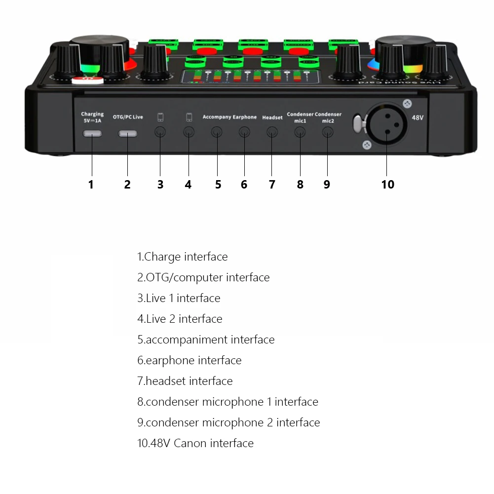 - Humanized Interface Design: The sound card supports a wide range of devices, including mobile phones, tablets, and computers. Its rich 10 interfaces are compatible with most audio equipment, offering versatility and ease of use.
